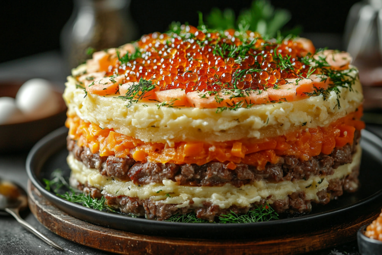Этот торт-закуска — настоящее спасение, когда нужно накормить большую компанию чем-то действительно впечатляющим. Сочетание трех видов мяса создает невероятно насыщенный вкус, а слоеная структура делает каждую порцию маленьким кулинарным открытием. Такой торт станет главным украшением праздничного стола — его эффектный вид и богатый вкус никого не оставят равнодушным. Это блюдо доказывает, что настоящая мужская кухня может быть изысканной.