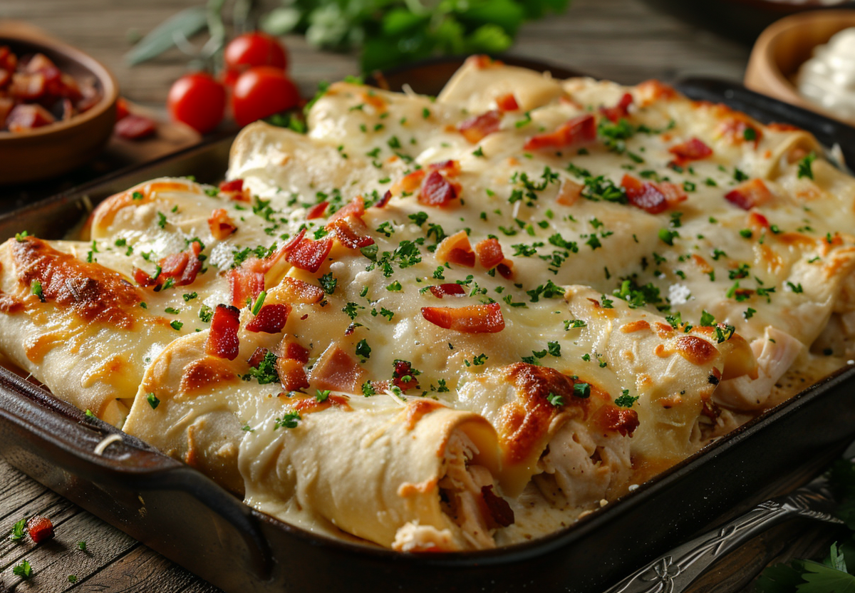 Иногда самые простые ингредиенты, собранные с любовью и фантазией, создают блюдо, достойное ресторанного меню. Эти хрустящие трубочки из лаваша — именно тот случай, когда минимум усилий дарит максимум вкуса и восторга. Они сочетают в себе нежную курицу, пикантный бекон, тягучий сыр и ароматный сливочный соус с зеленью, превращаясь в идеальную закуску для дружеских посиделок, фуршета или даже праздничного стола. Это блюдо — гимн текстурам: хрустящий лаваш снаружи и сочная, ароматная начинка внутри. Оно удивит ваших гостей изысканным видом и точно не оставит равнодушным ни одного гурмана.