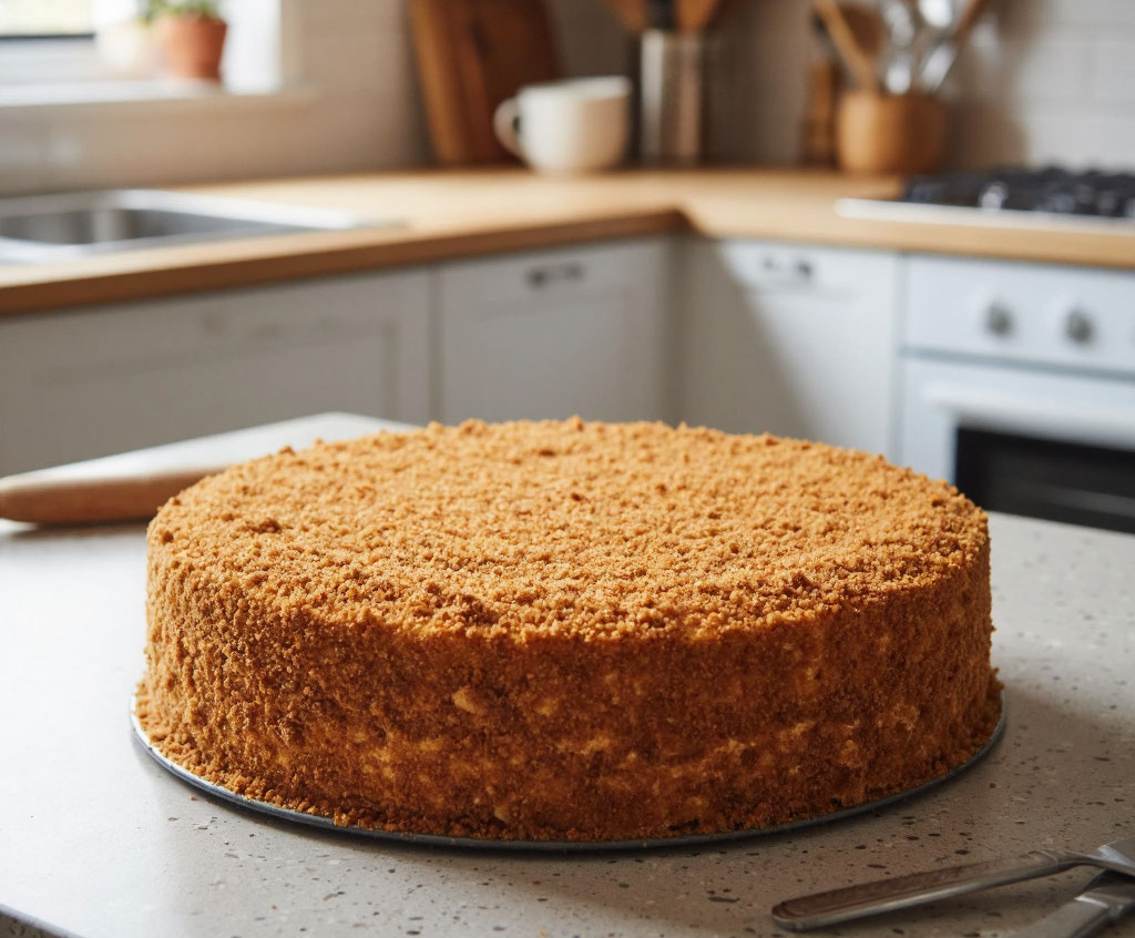 Получается обалденная вкуснятина: нежные, тающие во рту медовые коржи с легкой пряной ноткой и густой, бархатный крем из сгущенки с маслом, который пропитывает каждый слой.