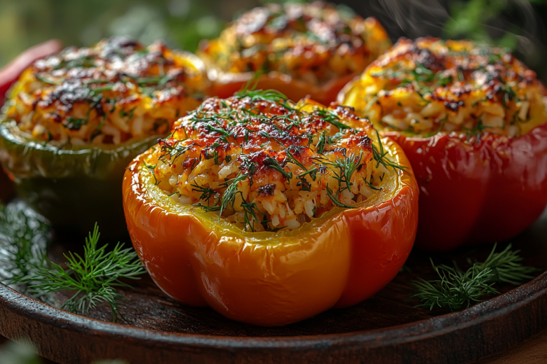Сочные болгарские перцы, наполненные нежной рисово-грибной начинкой с луком и морковью, томятся в томатном соусе, пропитываясь им и становясь невероятно вкусными.