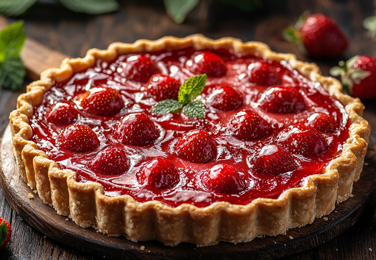4. Выложите на джем клубнику, заверните бортики теста по кругу. Смажьте желтком.