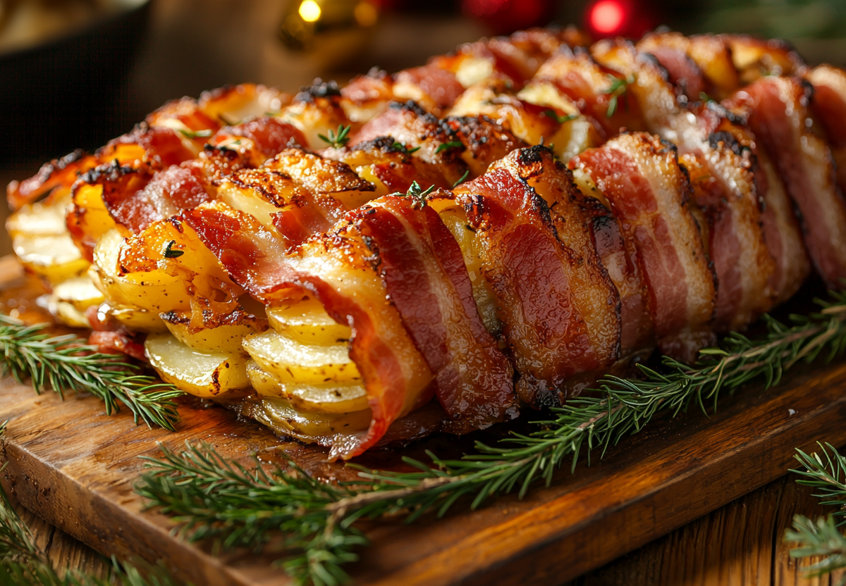 Новогоднее горячее за 10 минут подготовки: картофельный батон в беконе — простые ингредиенты и невероятный вкус