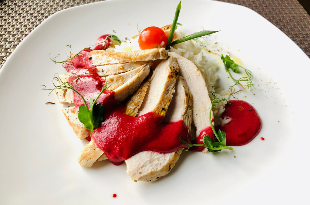- Мясо индейки солим и перчим по вкусу. Выкладываем филе на подушку из кокосового молока и овощей. Запекаем около получаса. Приятного аппетита!