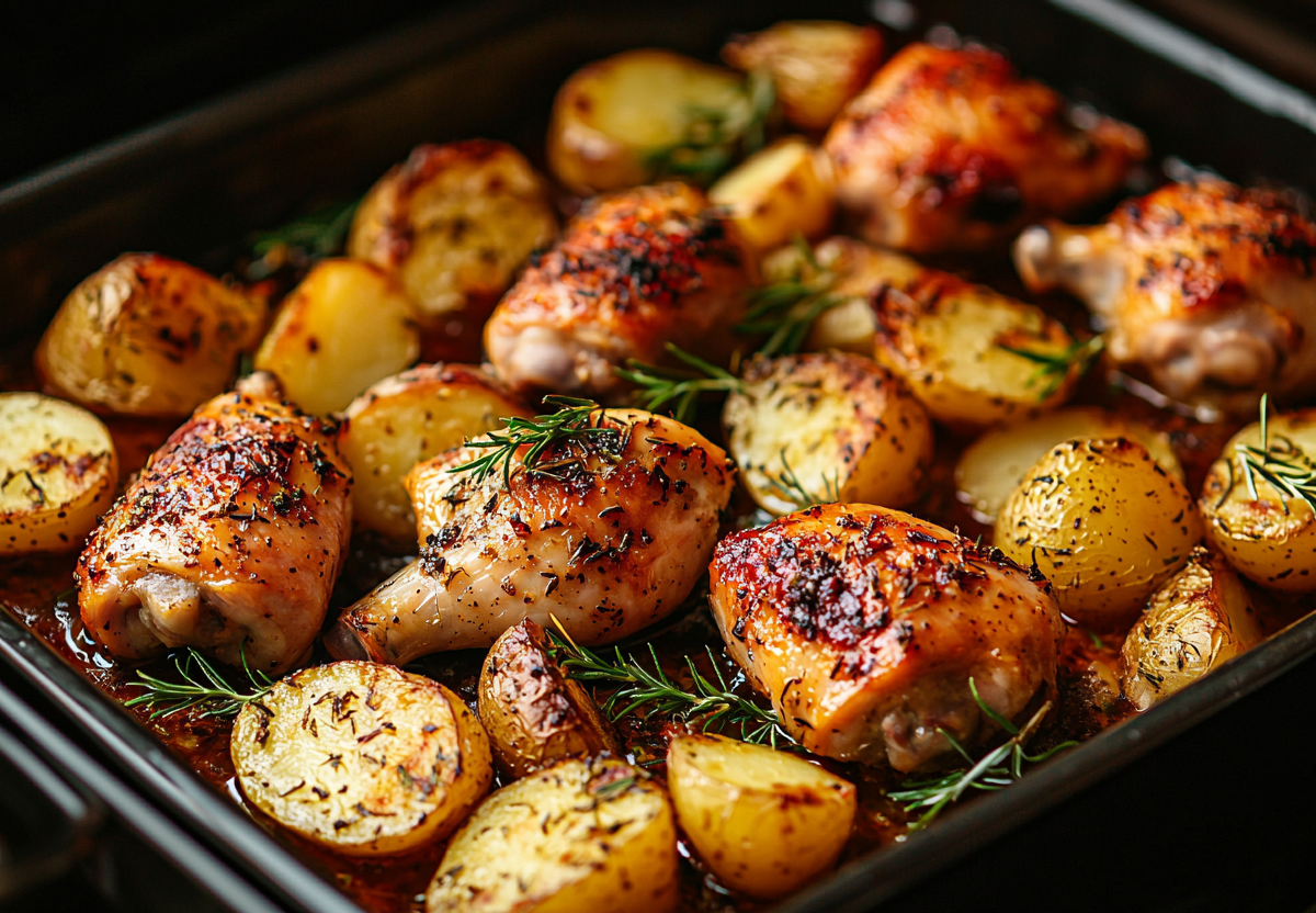 Новый год встречаем легко и красиво. Запекаем куриные окорочка с картофельными дольками — простое праздничное горячее
