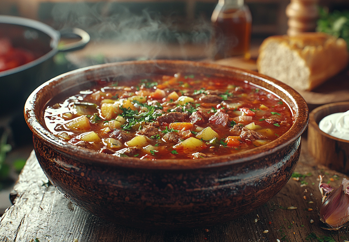 Вы еще не пробовали «Пьяный борщ» от дедушки? Неважно от какого, важно, что его завершающий штрих — рюмка водки — придает ему особую изюминку. От него веет вайбом теплой печки и доброго семейного ужина. Этот рецепт борща «Пьяный» передается из поколения в поколение и является настоящей находкой для любителей ярких и насыщенных вкусов.