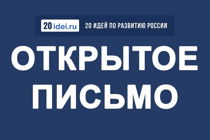 Я прошу Вас как президента Российской Федерации оказать поддержку проекту «20 идей по развитию России», рассмотрев содержащиеся в нем предложения и обратив внимание органов государственной власти на необходимость внедрения наиболее актуальных для страны, на Ваш взгляд, мер.