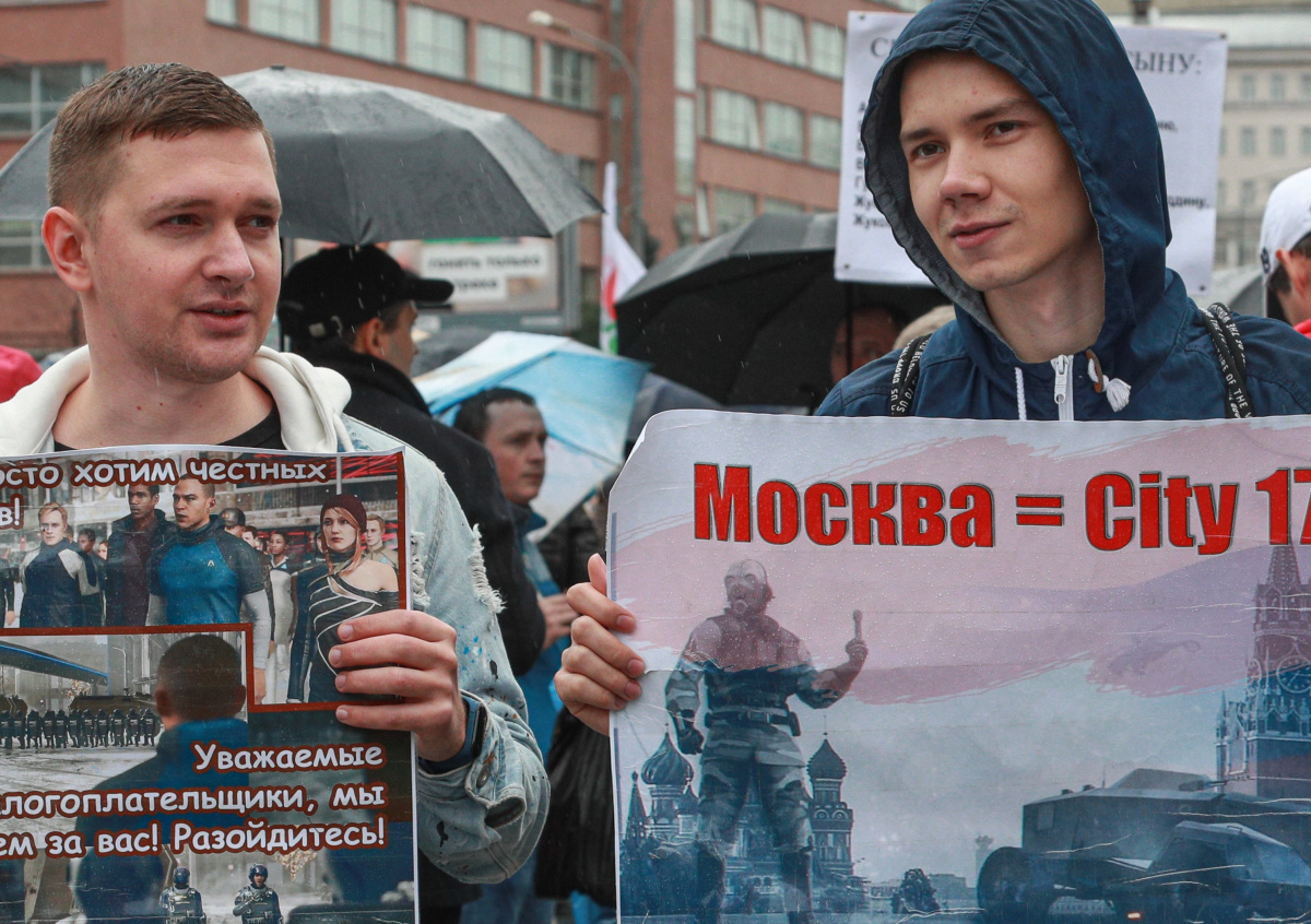 Люди выступали в поддержку незарегистрированных претендентов на статус кандидата в Мосгордуму и активистов, задержанных за участие в несанкционированных акциях.