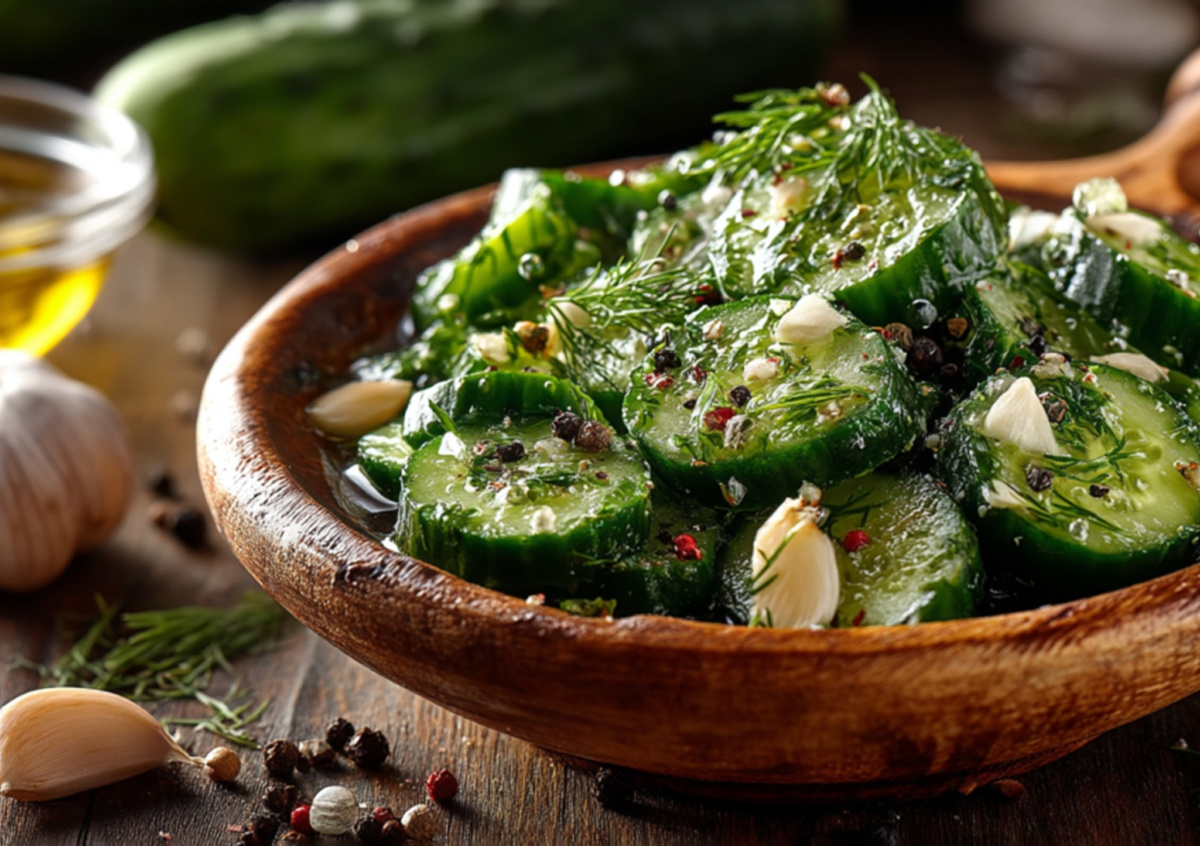 Когда нужно срочно поставить что-то вкусное на стол, этот рецепт выручает без лишних хлопот. Огурцы получаются ароматными, пикантными и хрустящими — отличная альтернатива привычным салатам и закускам.