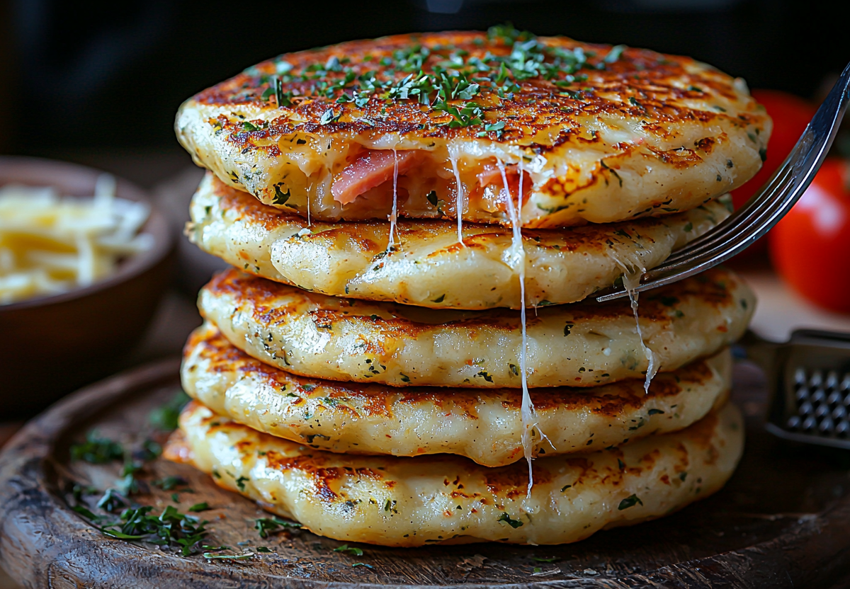 Оладьи-пицца на скорую руку! Невероятная закуска с пикантной начинкой! Пышные оладушки с хрустящей корочкой, внутри — расплавленный сыр, ароматная ветчина и сочные помидоры. Готовятся за 15 минут и заменяют целую пиццу!
