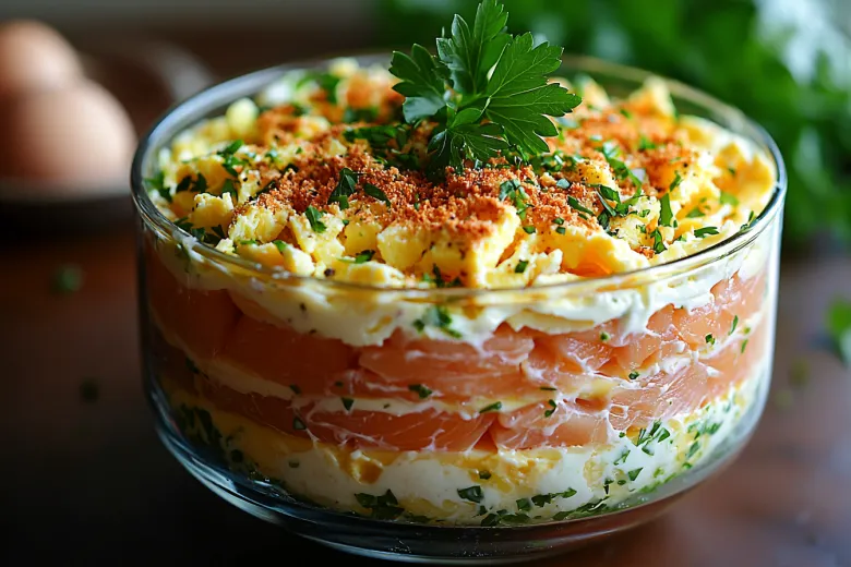 Оливье — прошлый век: этот слоеный салат с горбушей и огурцом нежнее, а готовится без варки овощей