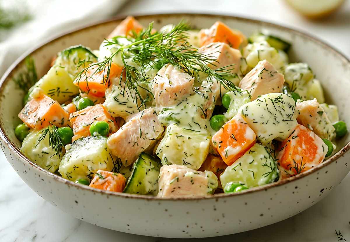 Оливье с копченой курицей и авокадным соусом! Вкуснота для стройности! Лёгкая и полезная версия любимого салата! Нежная копчёная куриная грудка и кремовый соус на основе йогурта делают его по-настоящему вкусным без лишних калорий. Идеально для тех, кто следит за питанием, но не готов отказывать себе в удовольствии.