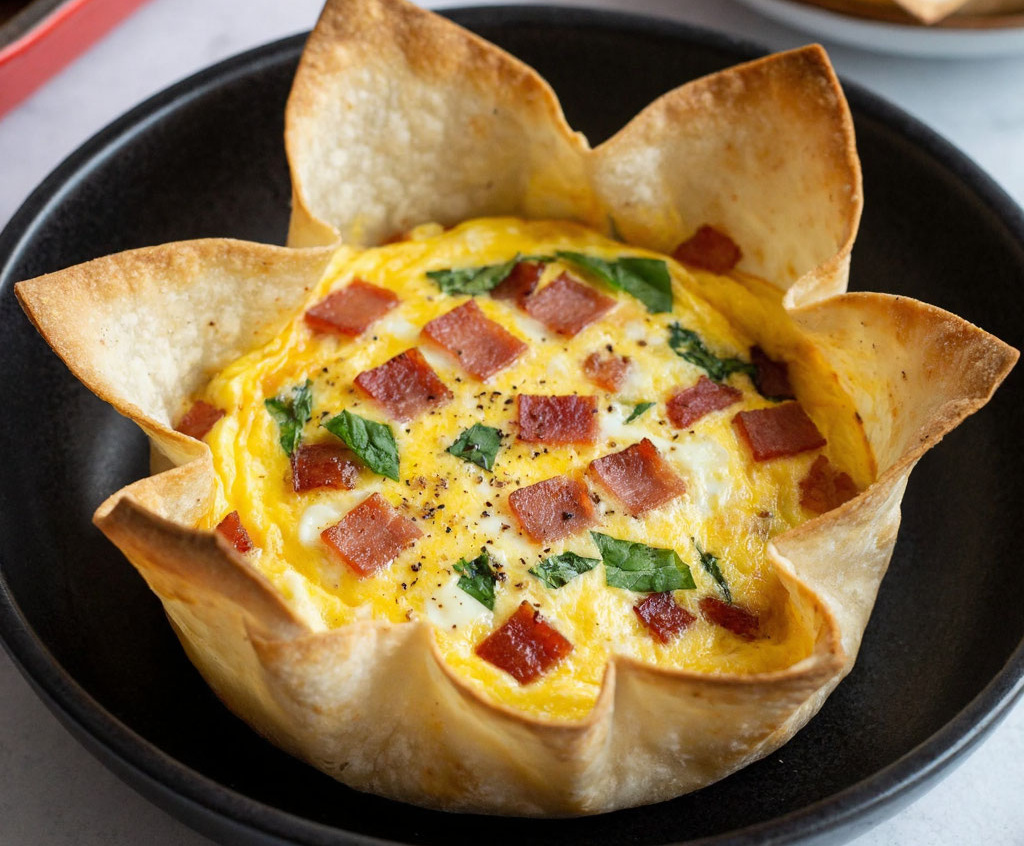 Получается обалденная вкуснятина: хрустящие золотистые корзинки из лаваша и нежная, сочная омлетная начинка с кусочками ветчины и ароматом перца, которые скрепляют все воедино.