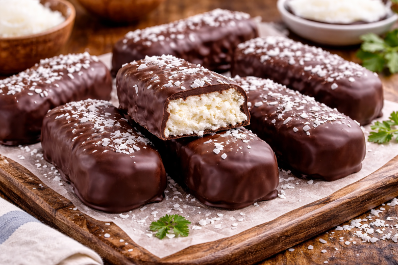 Эти домашние конфеты «Баунти» легко спутать с любимым батончиком из магазина — такие же нежные, кокосовые и в шоколадной глазури. Но в отличие от классического варианта здесь простой состав и понятная польза. Готовятся за считаные минуты и отлично подходят к чаю, кофе или как полезный десерт без чувства вины. В 100 граммах около 170 калорий.