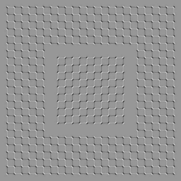 Изображение представляет собой два квадрата, один в другом, причём каждый из них, в свою очередь, состоит из мелких квадратиков. Если остановить на картинке взгляд, квадраты «оживают».