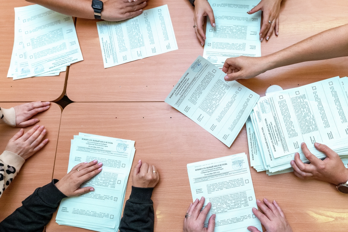 Сотрудники Участковой избирательной комиссии во время подсчета избирательных бюллетеней Сотрудники Участковой избирательной комиссии во время подсчета избирательных бюллетеней Фото: Александр Пирагис/РИА Новости