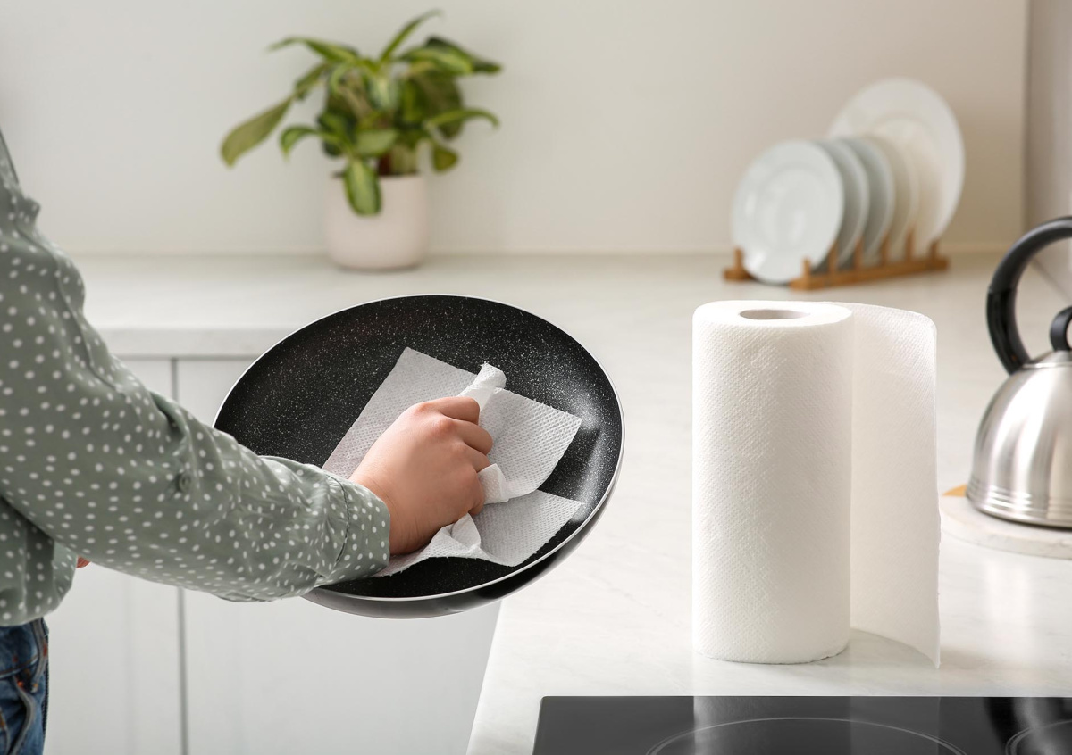- Смочите бумажное полотенце яблочным уксусом (если его нет, подойдет столовый 9%-й).