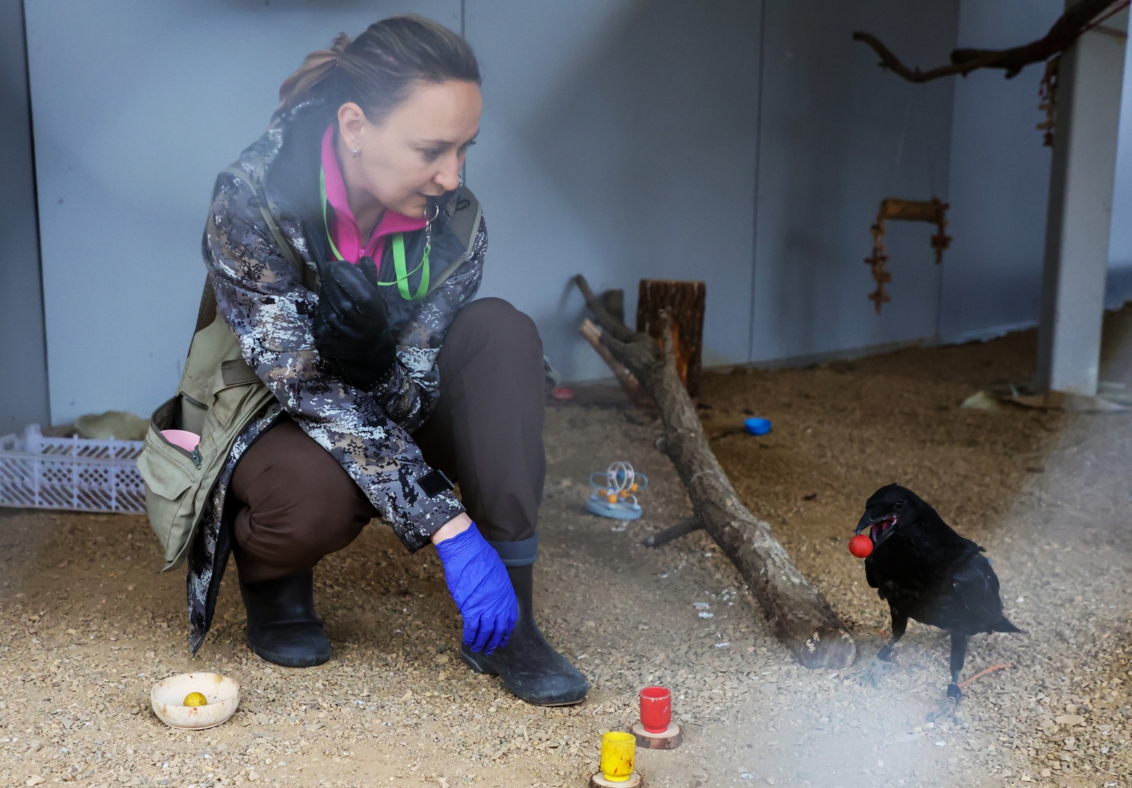 В центре работают три экскурсовода, два ветеринарных врача, четыре тренера по птицам, инженеры, кассиры и многие другие сотрудники. Одиннадцать пернатых находятся в «тренинге» — их готовят для будущих выступлений. Это совы, длиннохвостые и бородатые неясыти, а также тетеревятник.