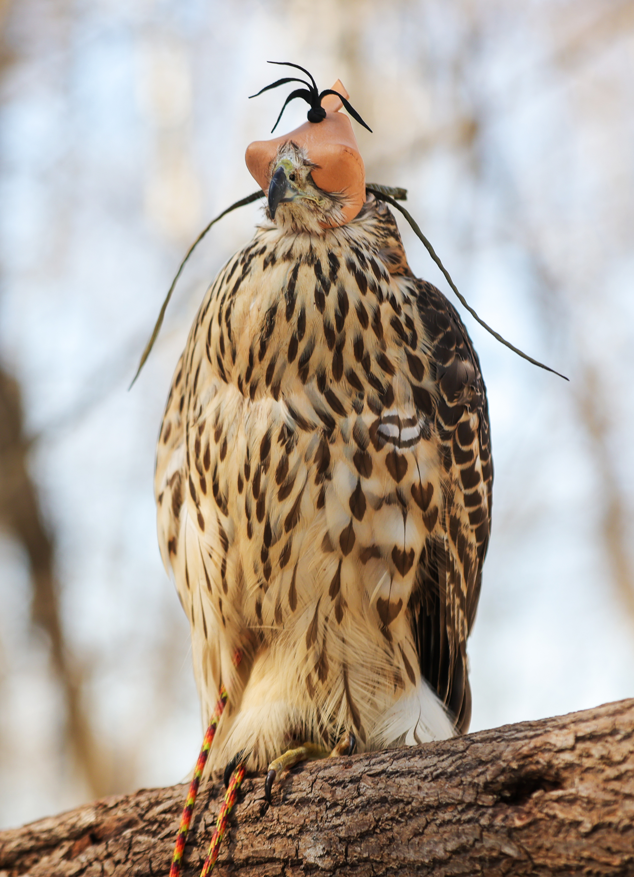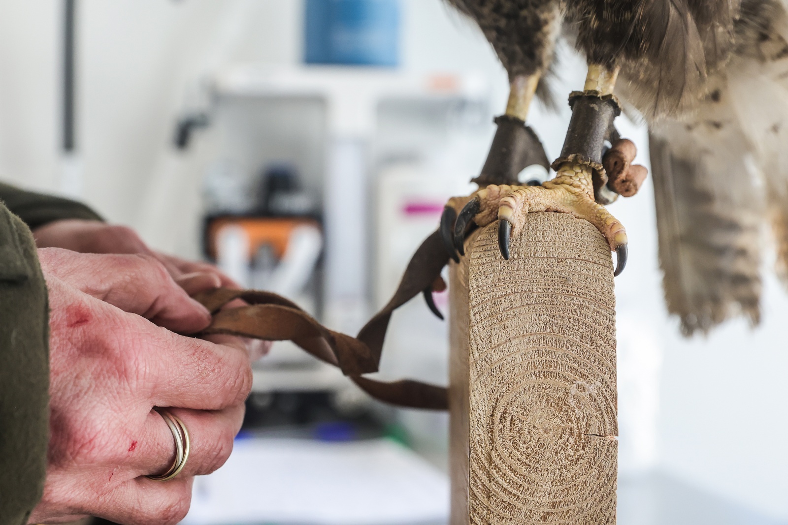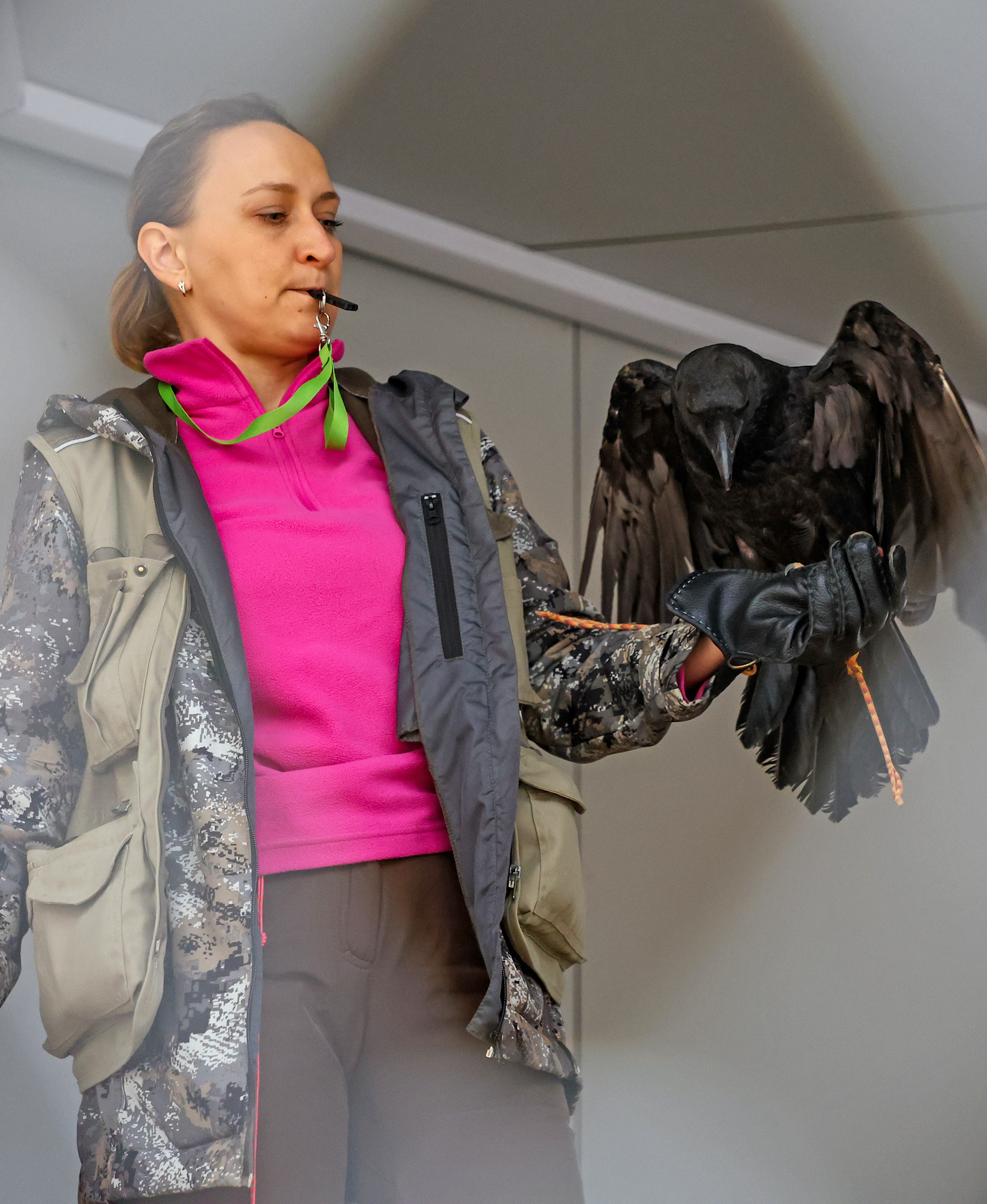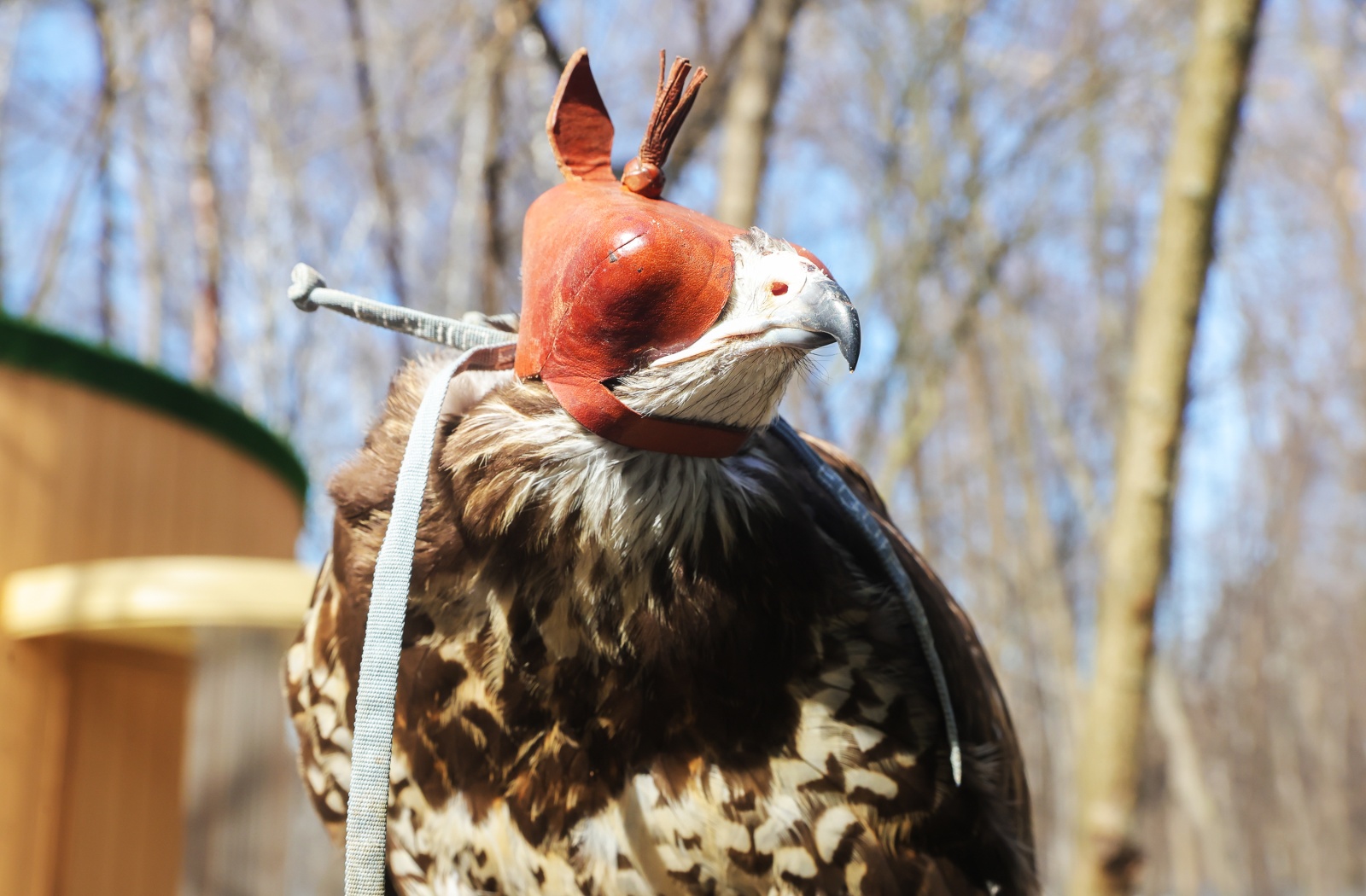 Хищная птица на дрессировке в центре восстановления и адаптации птиц