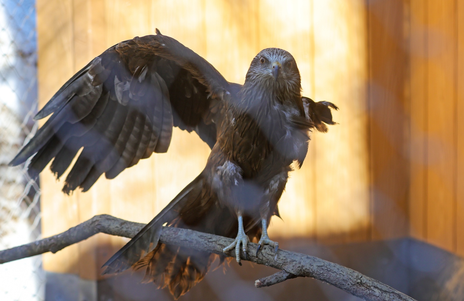 По словам экскурсовода, в какой-то момент хозяевам стало тяжело справляться с Аркадием. В период размножения он становился все более агрессивным. Когда люди пытались убраться у него в вольере, он на них бросался. Из-за неправильного содержания и питания орлан облысел.
