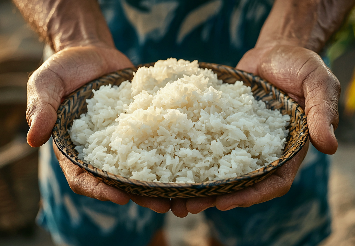 - Белый рис — около 130–150 ккал на 100 г.