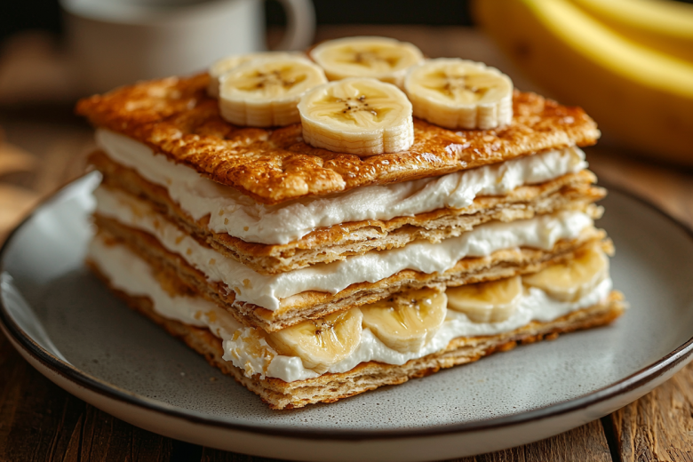От сладкого не отказываюсь, готовлю диетический наполеон: лаваш, банан, пудинг — и на час в холодильник
