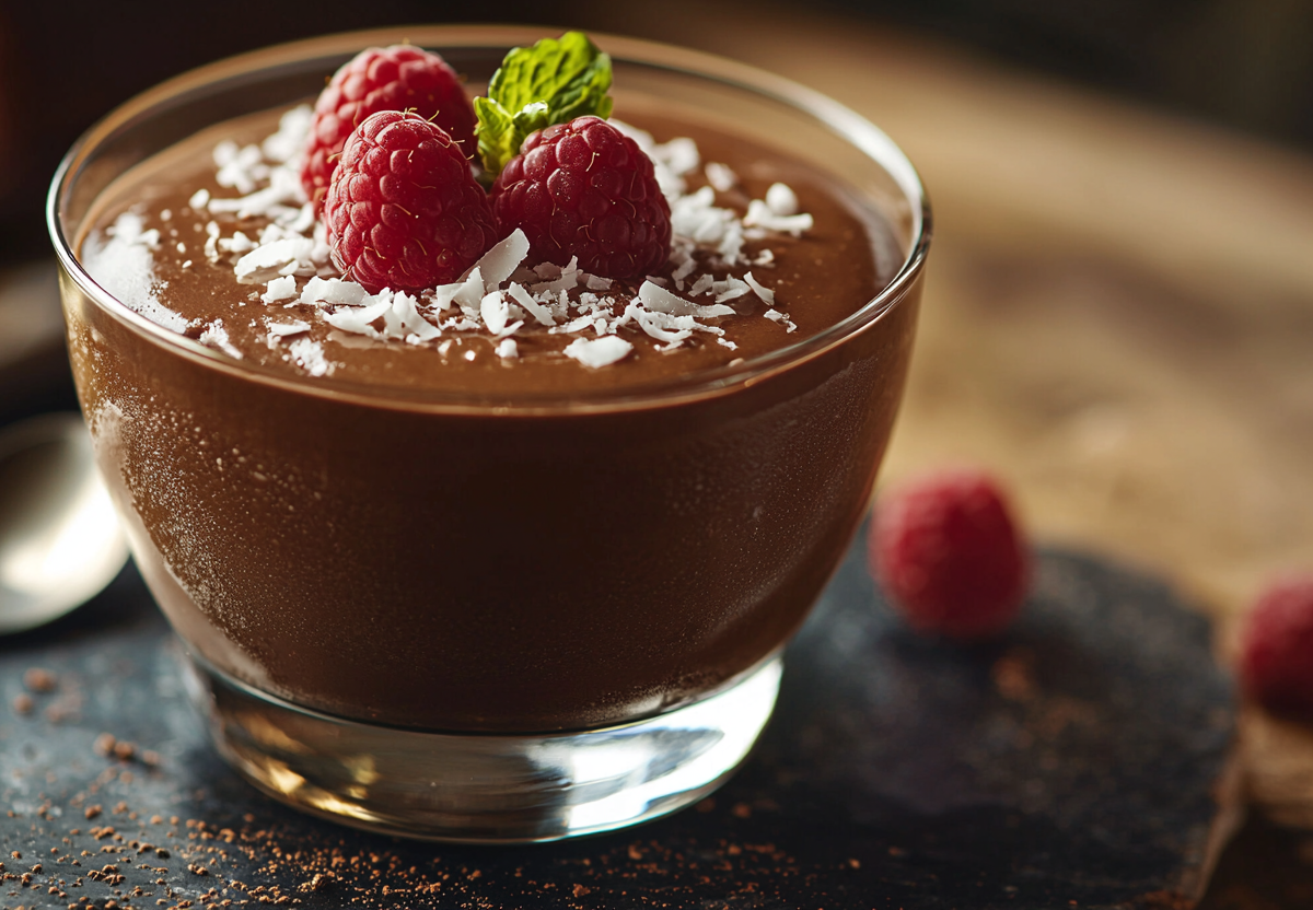 Для начала залейте 4 г желатина (чайная ложка без горки) 30 мл холодной воды и оставьте набухать на 10–15 минут. В это время подготовьте основу: в блендере смешайте 100 г мягкого творога (0–5%), 100 мл молока (можно растительного), 20 г какао‑порошка без сахара и подсластитель по вкусу (2–3 чайные ложки). Когда желатин набухнет, аккуратно растопите его на водяной бане (не доводите до кипения) и добавьте к творожной массе. Ещё раз взбейте до однородности, разлейте по креманкам и отправьте в холодильник на 3–4 часа. Перед подачей украсьте свежими ягодами или кокосовой стружкой — и наслаждайтесь лёгким, ароматным десертом!