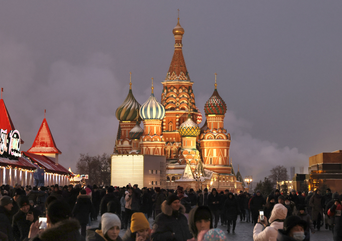 Люди на Красной площади в канун Нового года