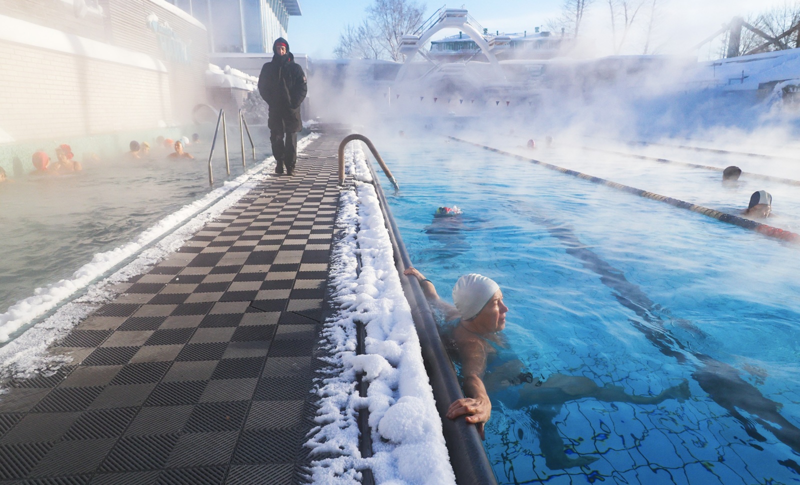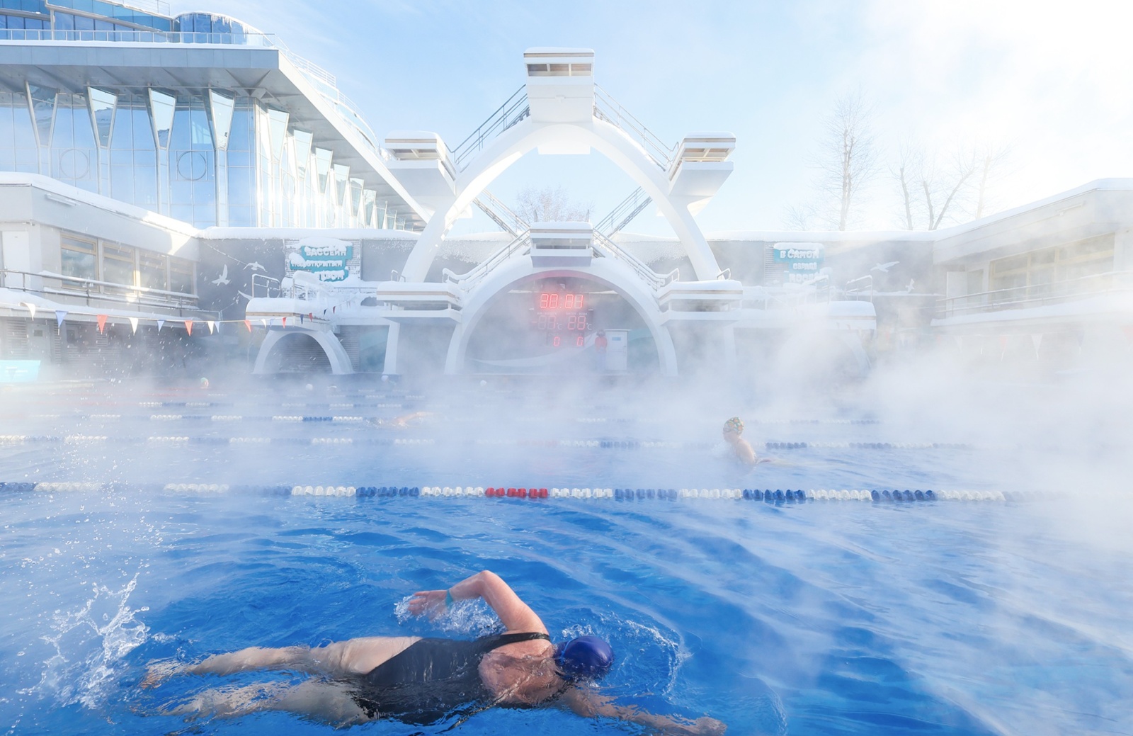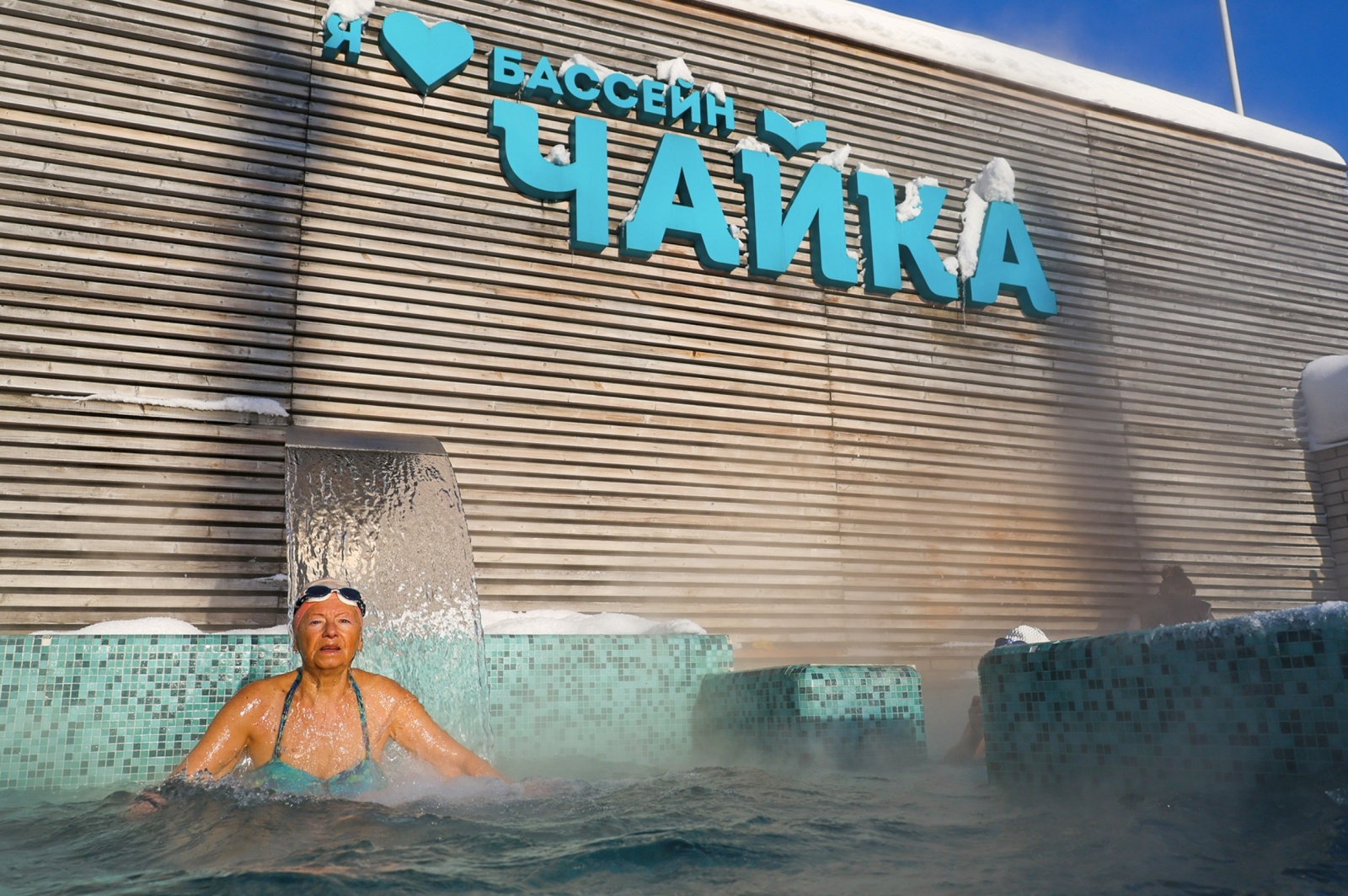 Отдых в бассейне «Чайка» под открытым небом при минусовой температуре