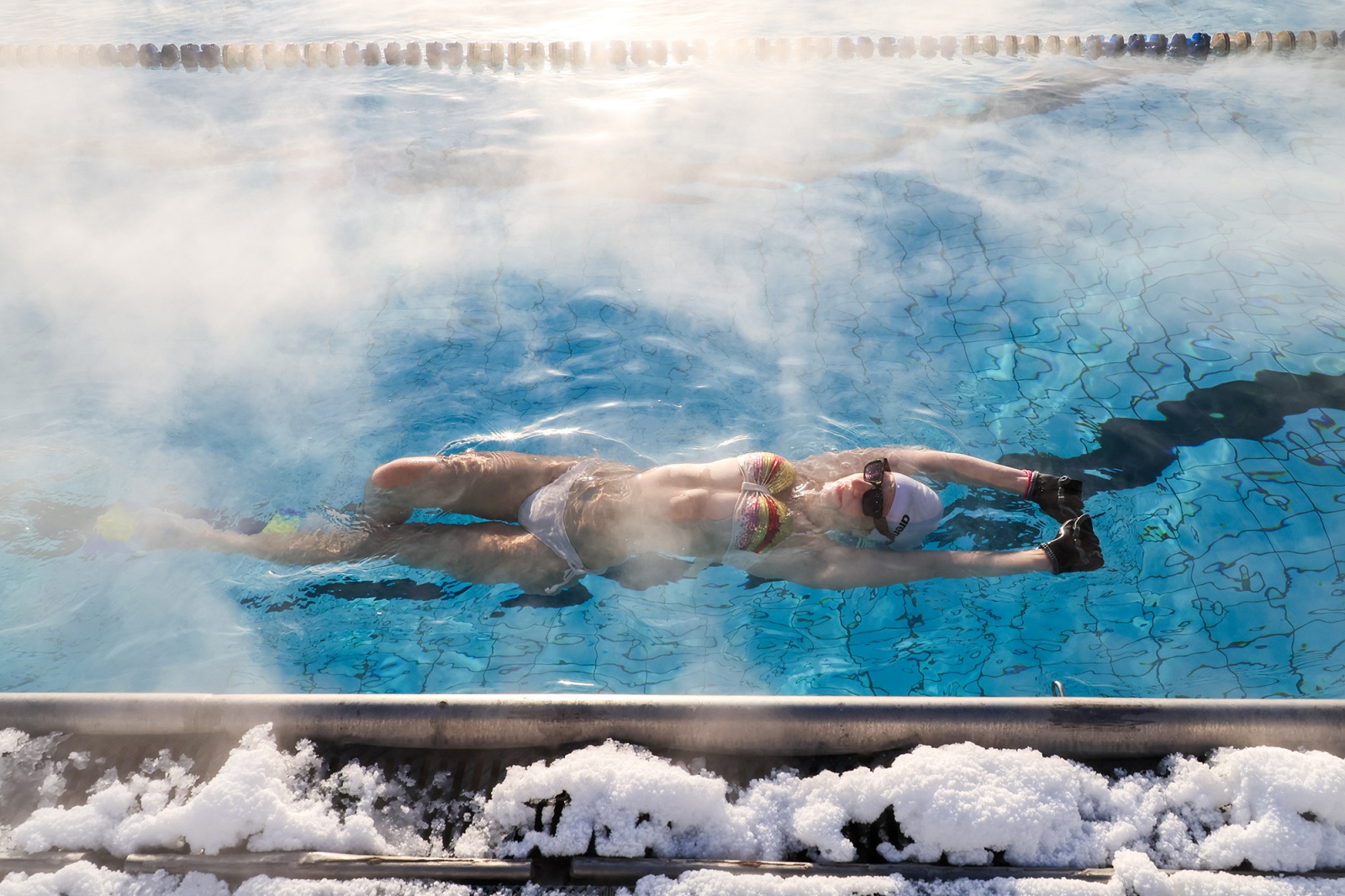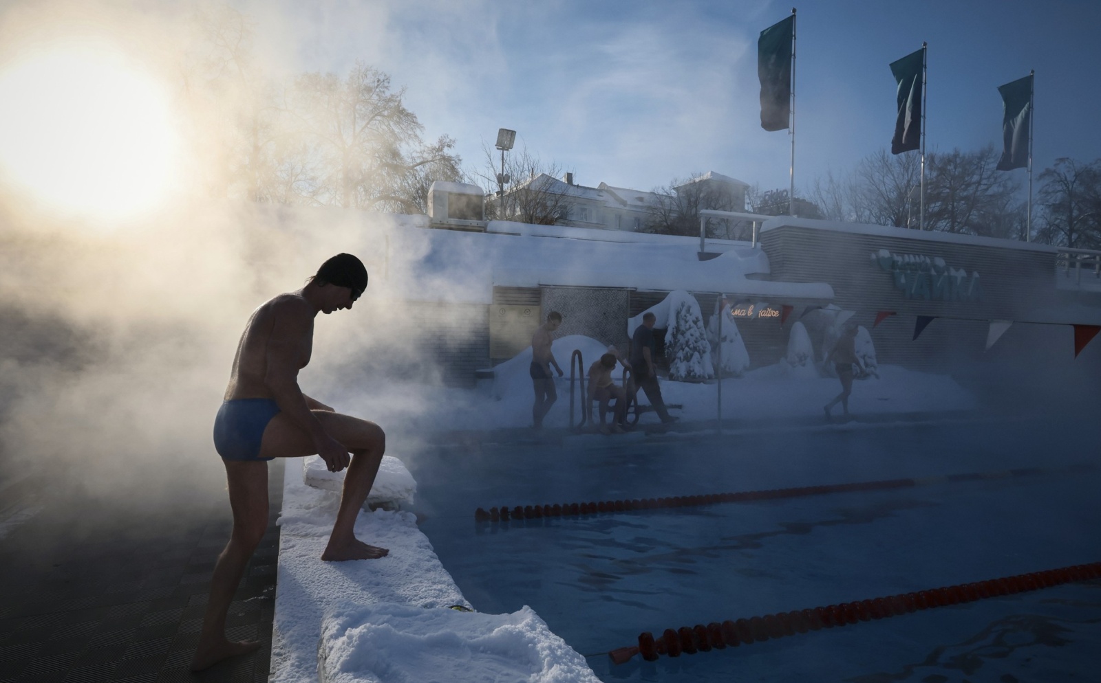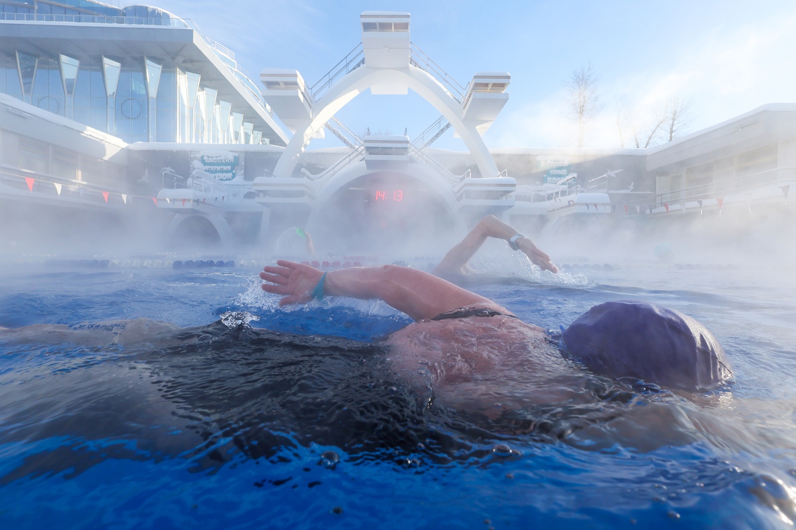 Отдых в бассейне «Чайка» под открытым небом при минусовой температуре