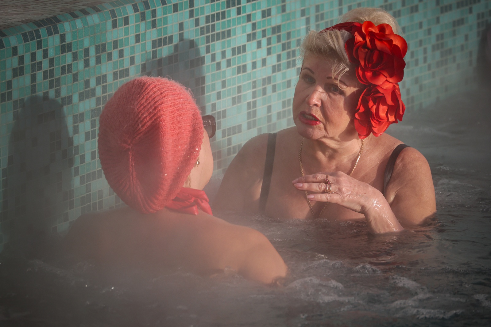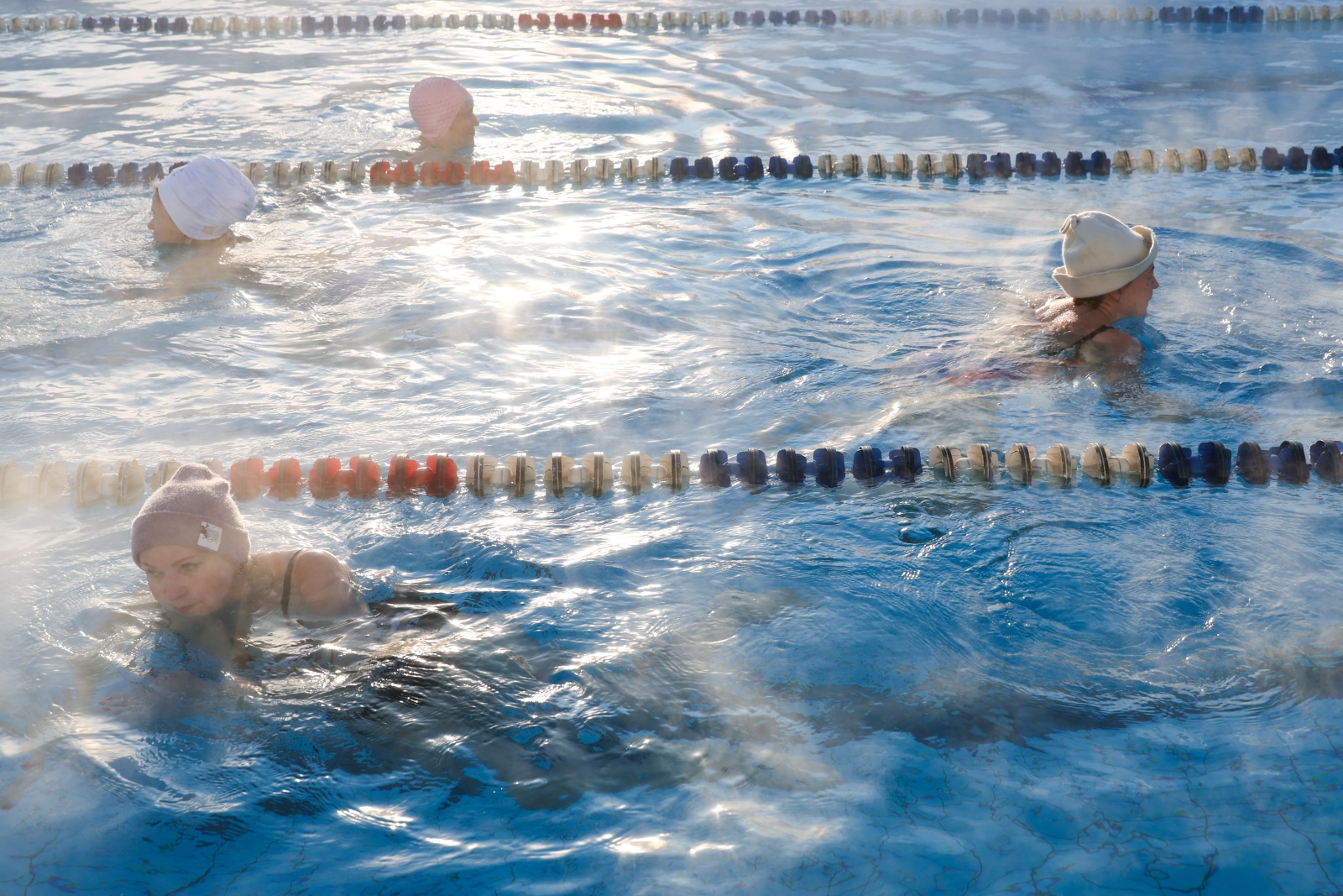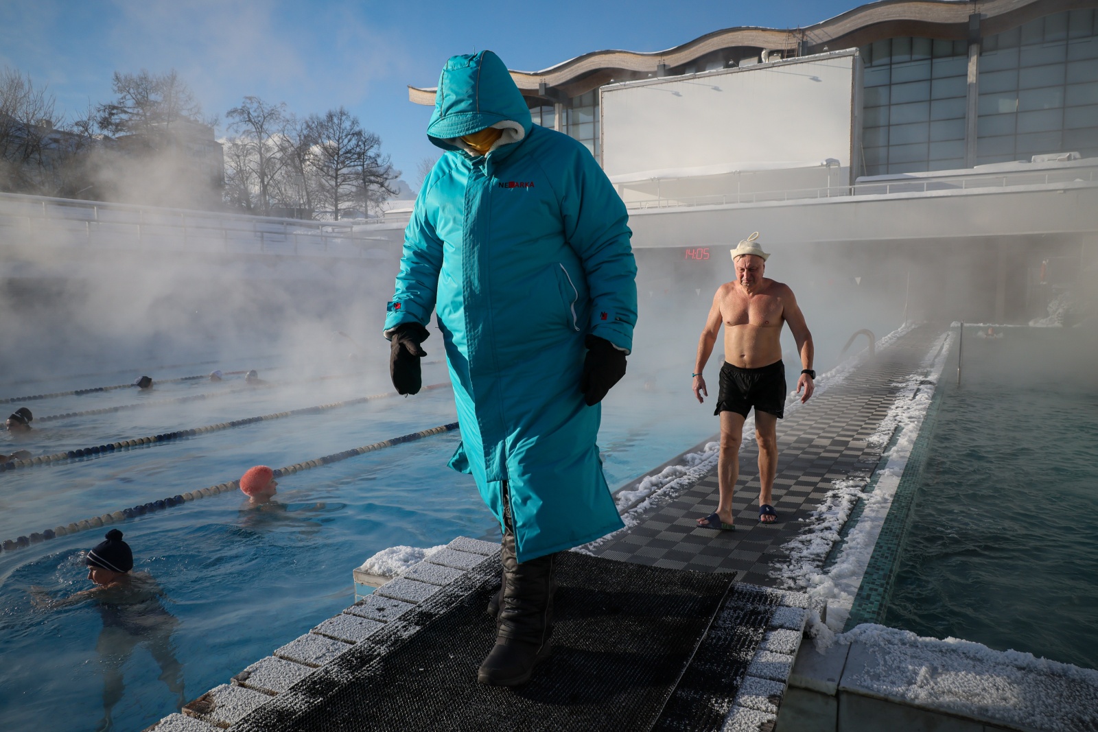Посетители бассейна «Чайка» во время морозов