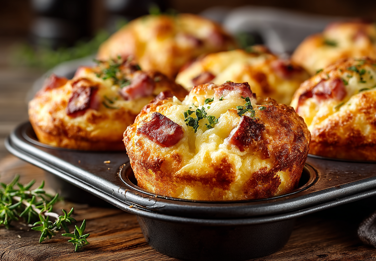 Пшеничная мука — 200 г, яйца — 2 шт., сметана — 150 г, разрыхлитель — 1 ч. л., соль — 0,5 ч. л., сахар — 1 ч. л., вареная ветчина — 150 г, твердый сыр — 100 г, зеленый лук — 3-4 пера, растительное масло — 1 ст. л. для смазывания форм.