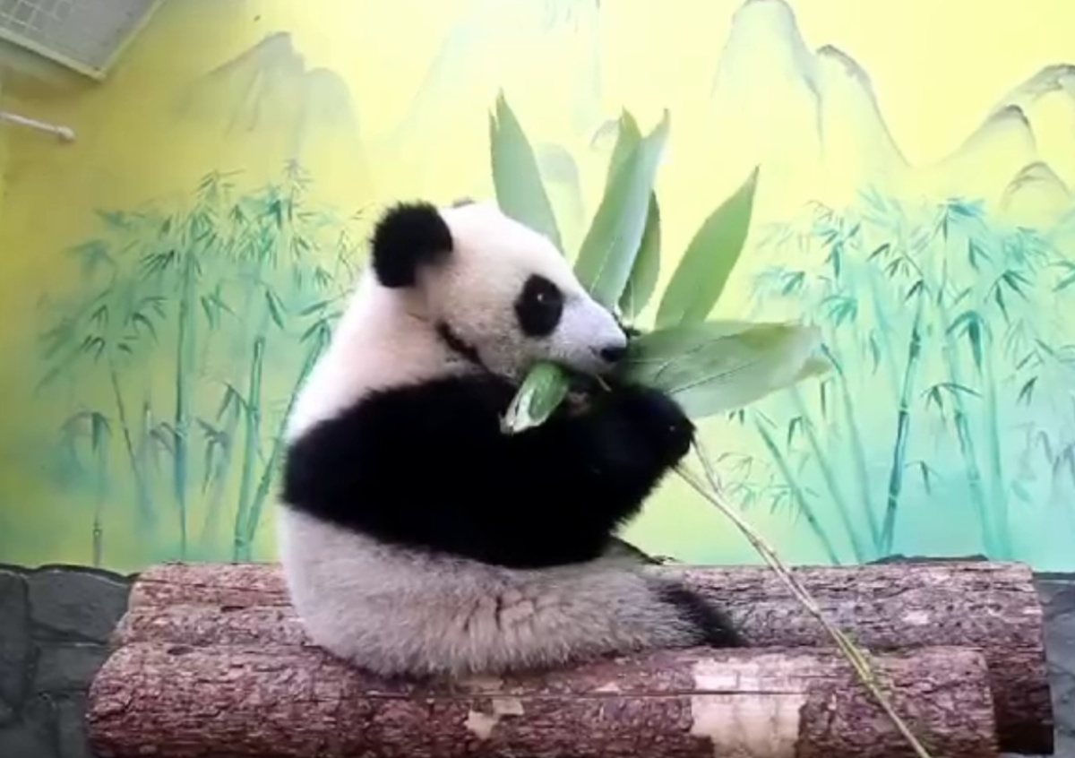 Панда Катюша перешла на взрослый рацион питания, сообщила в своем Telegram-канале директор Московского зоопарка Светлана Акулова. Она опубликовала видео, как маленькая медведица поедает веточку бамбука.