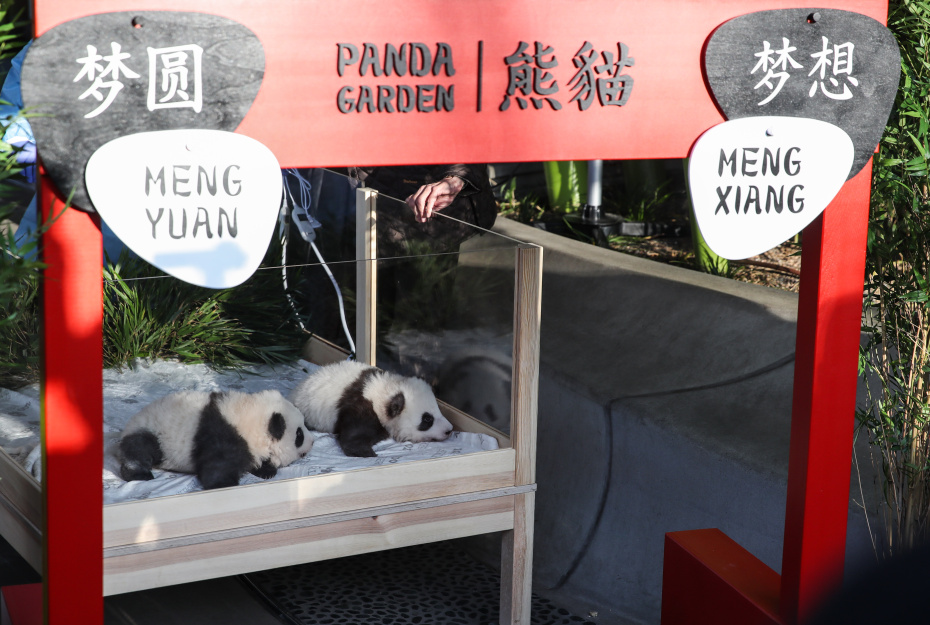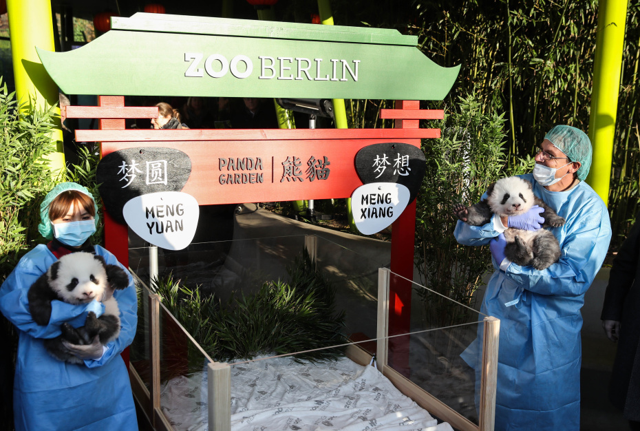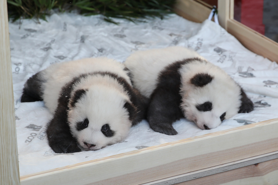 Берлинский зоопарк в понедельник, 9 декабря, показал панд-близнецов, родившихся в последний день лета. По китайской традиции через 100 дней после рождения объявляют пол и имена малышей. Итак, в зоопарке живут два самца, которых назвали Менг Сян (Заветная Мечта) и Менг Ян (Исполненная Мечта). Малыши весят по шесть килограммов (при рождении их вес составлял всего 186 и 136 граммов) и в настоящее время учатся ходить. Посетителям зоопарка маленьких панд представят в начале нового года.