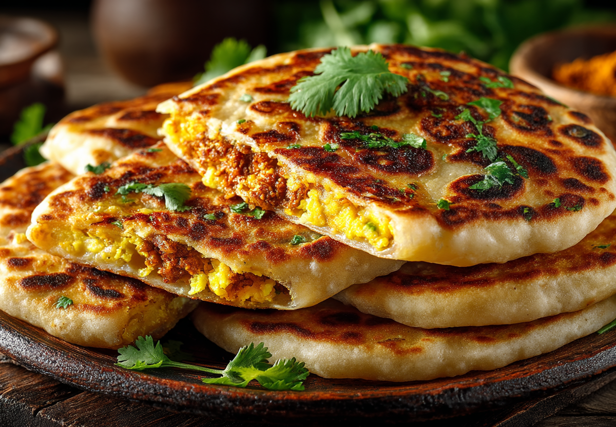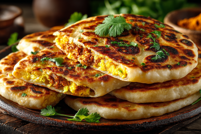 Разогреваем сухую сковороду или гриль, смазываем маслом и обжариваем параты на среднем огне с обеих сторон до золотисто-коричневых пятен, примерно по 2-3 минуты с каждой стороны.