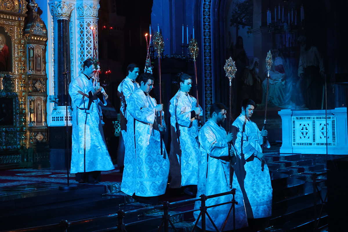 Пасхальная заутреня и божественная литургия в Светлую Пасхальную ночь в кафедральном соборном храме Христа Спасителя