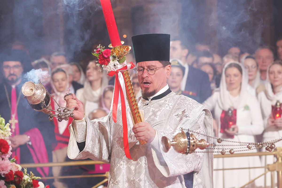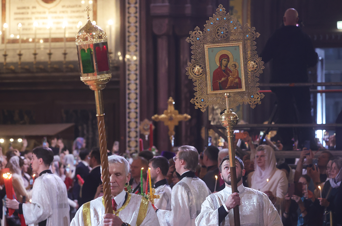 Пасхальное богослужение в Москве: яркие кадры из храма Христа Спасителя