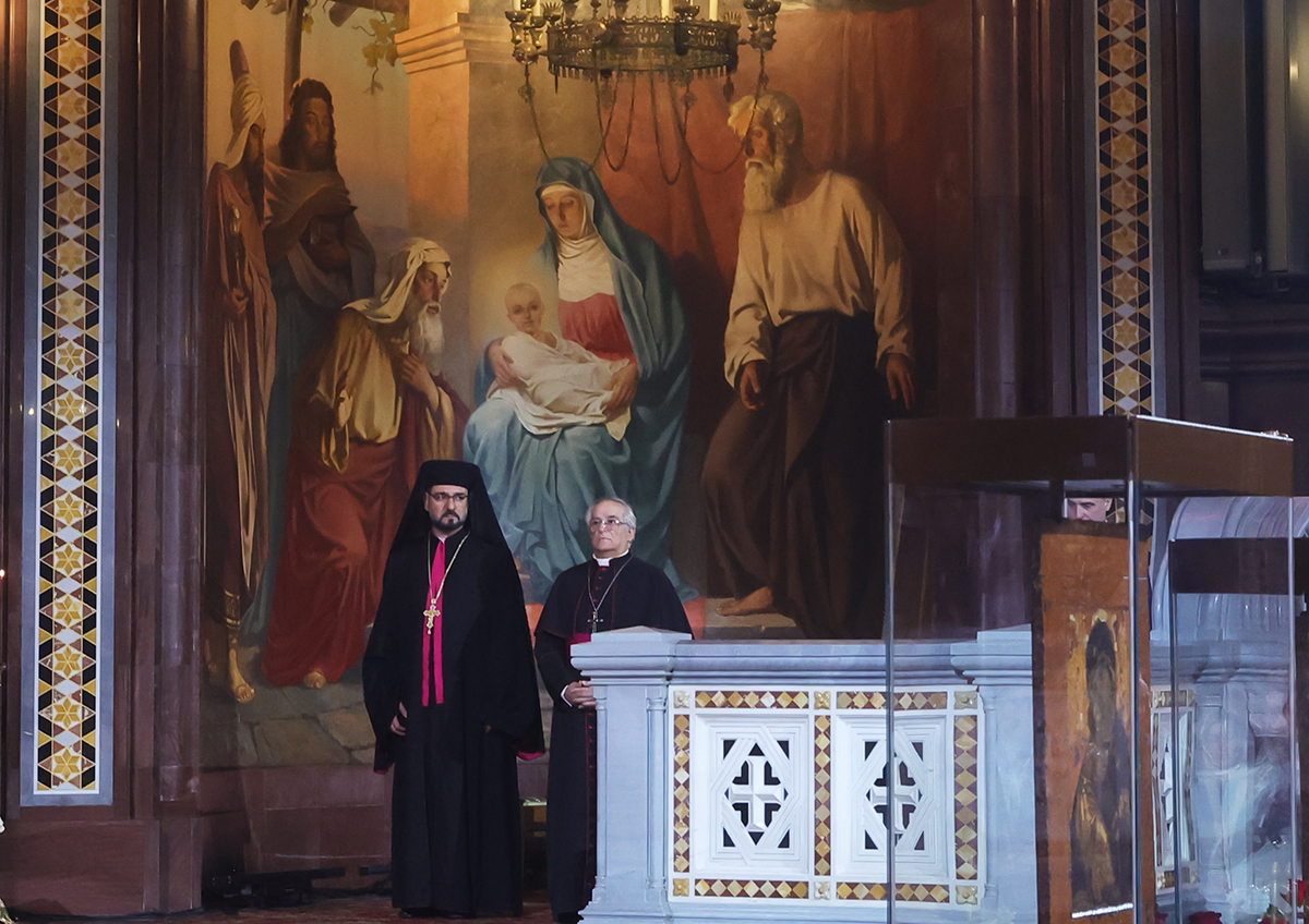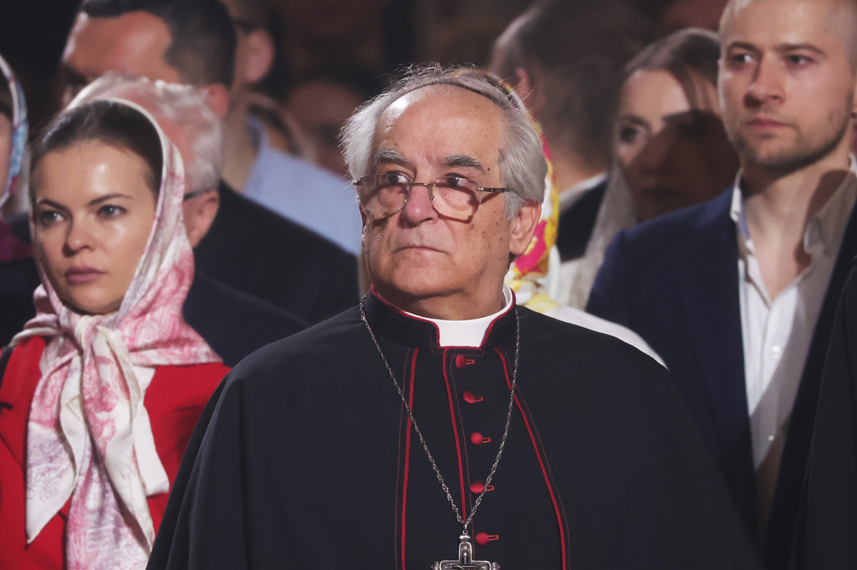 Папский нунций (посол Ватикана) в РФ Джованни д'Аньелло на праздничном пасхальном богослужении в храме Христа Спасителя в Москве
