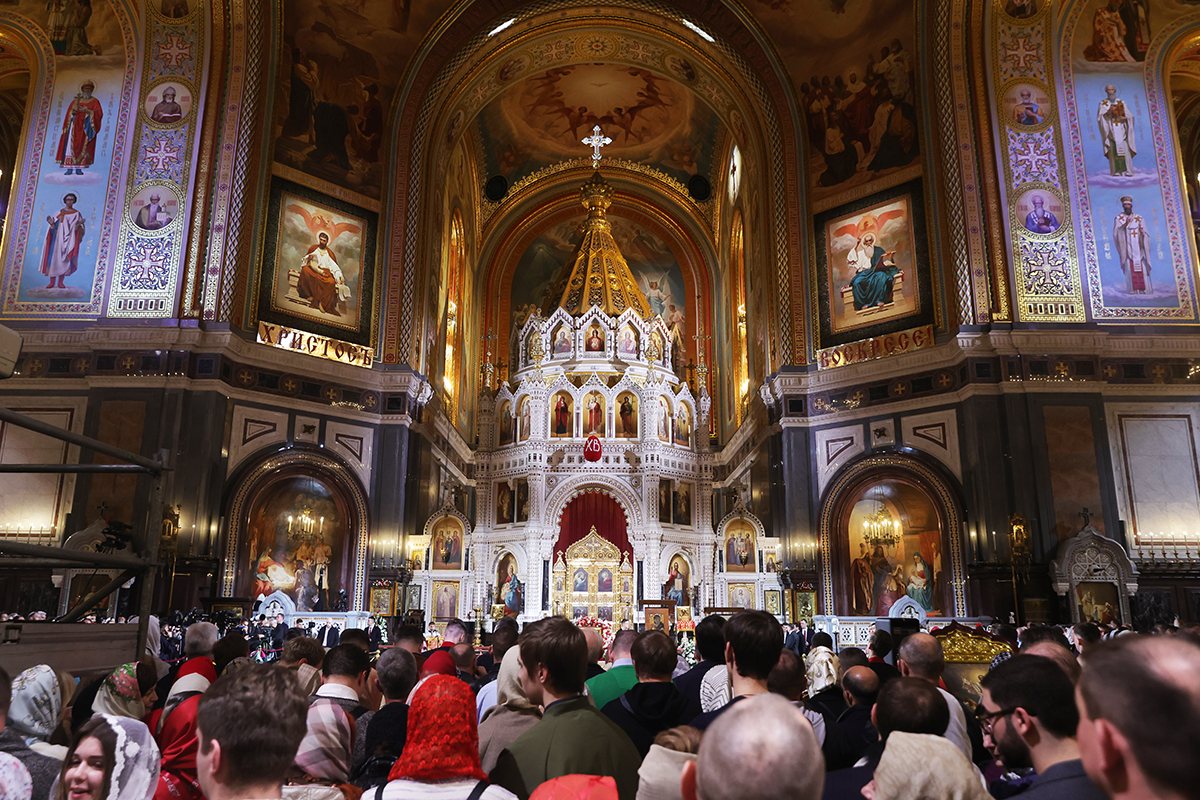 Праздничное пасхальное богослужение в храме Христа Спасителя в Москве