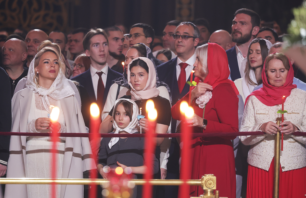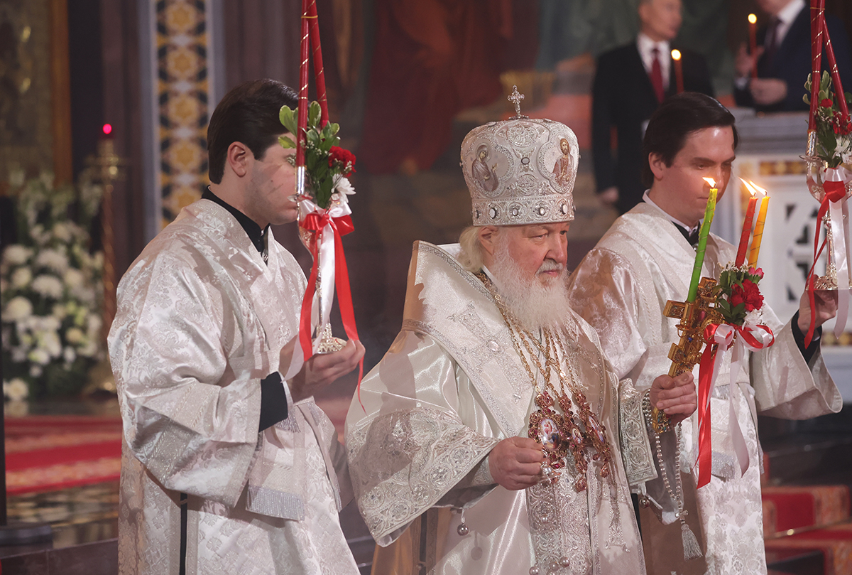 Ночное пасхальное богослужение в храме Христа Спасителя также традиционно посетил глава государства. Как и всегда, в главном кафедральном соборе страны патриарх Кирилл совершил Пасхальную заутреню и Божественную литургию. Путин неизменно присутствует на службах в ключевые церковные праздники.