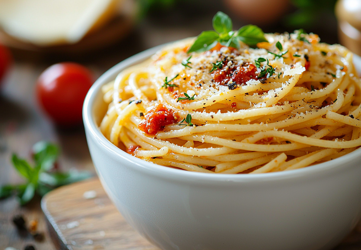 Просто залейте сломанные спагетти кипятком (на 2 пальца выше макарон) и поставьте в микроволновку на 10 минут. Слейте лишнюю воду, добавьте томатную пасту, сыр и любимые специи — вуаля! Для карбонары смешайте яйцо с пармезаном и перцем, для сливочного варианта — добавьте плавленый сырок. Быстро, вкусно и никакой грязной посуды!