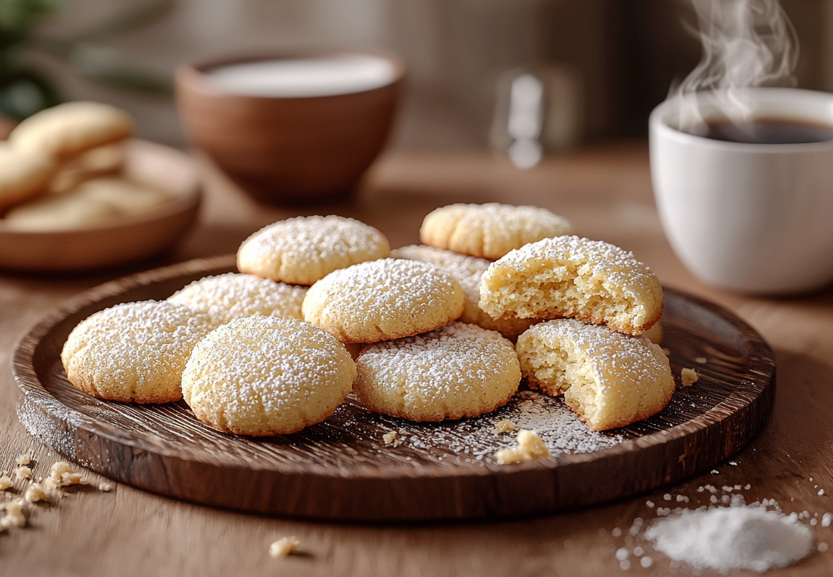 Готовое печенье отличается хрупкой текстурой и нежно-сливочным вкусом. Оно идеально сочетается с любыми горячими напитками — будь то чай, кофе или молоко. При желании можно разнообразить рецепт, добавив любимые пряности: корицу, ваниль или цедру лимона.