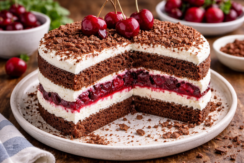 Этот ПП-торт — настоящая находка для тех, кто хочет сладкого без чувства вины. Один шоколадный корж готовится всего за 20 минут, а дальше торт собирается буквально на раз-два. Нежный творожный крем, кислинка вишни и насыщенный шоколадный вкус делают его идеальным десертом и к чаю, и к празднику.