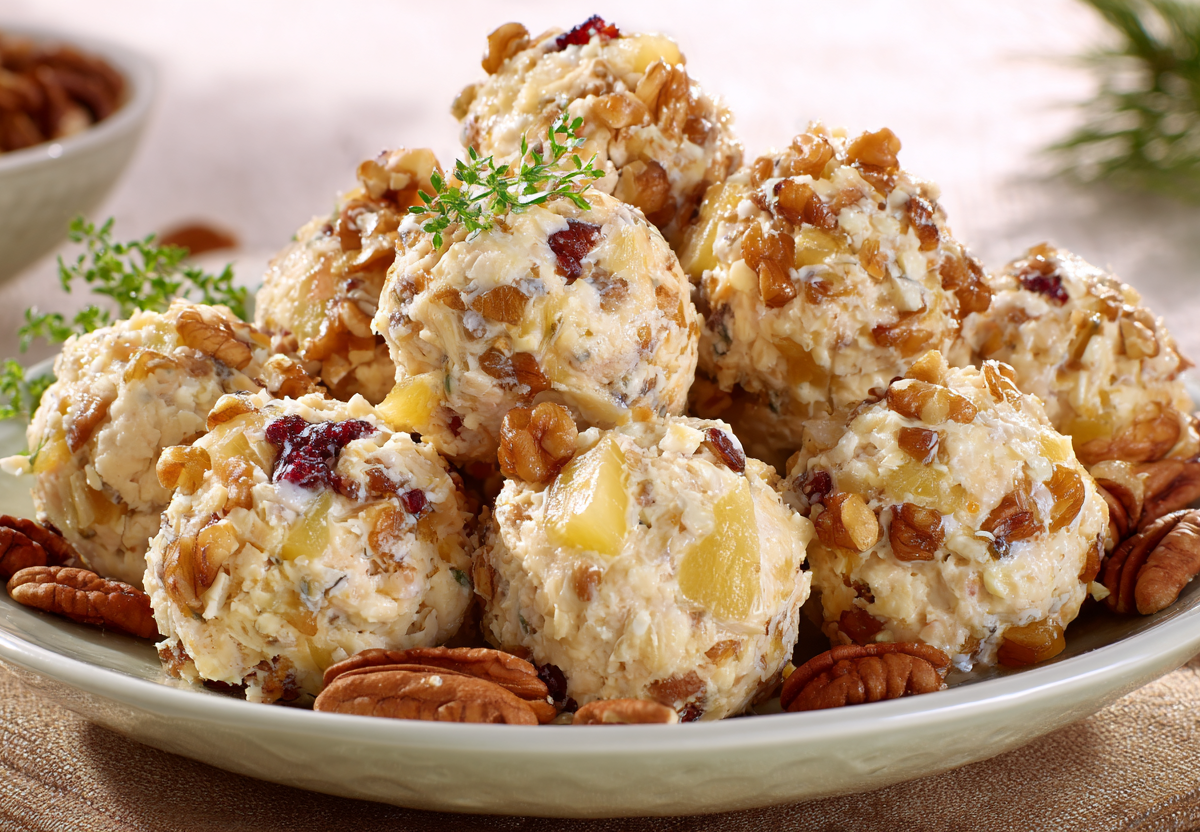 Эта закуска станет настоящим украшением вашего праздничного стола! Сочетание нежной курицы, сладковатых ананасов, пикантного сыра и хрустящих орехов создает взрыв вкуса в каждой ложке. А презентация в виде аккуратных шариков делает блюдо по-настоящему элегантным и удобным для сервировки.