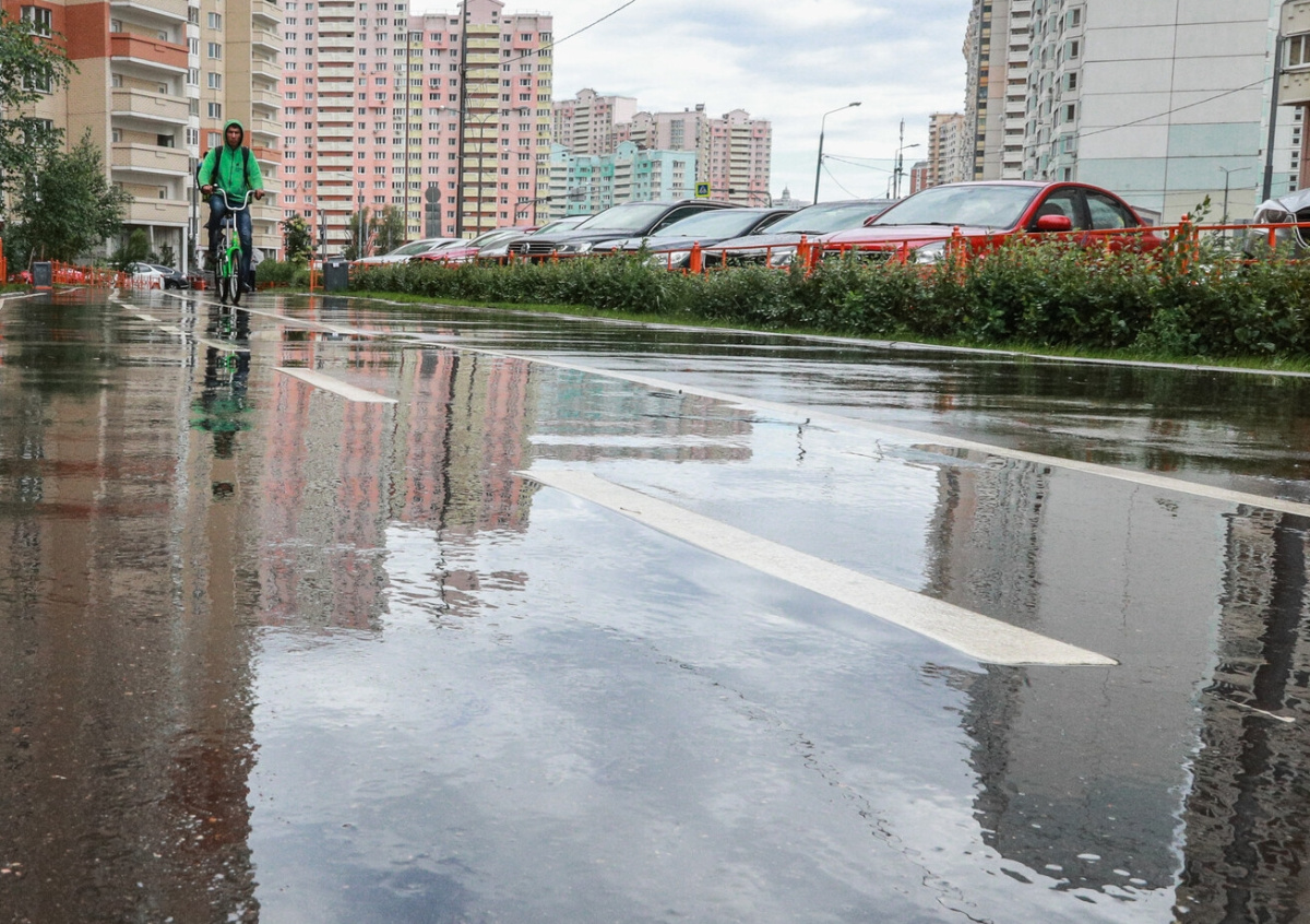 Согласно сервису «Яндекс.Погода», сильный дождь идёт на территории всего юго-запада столицы.