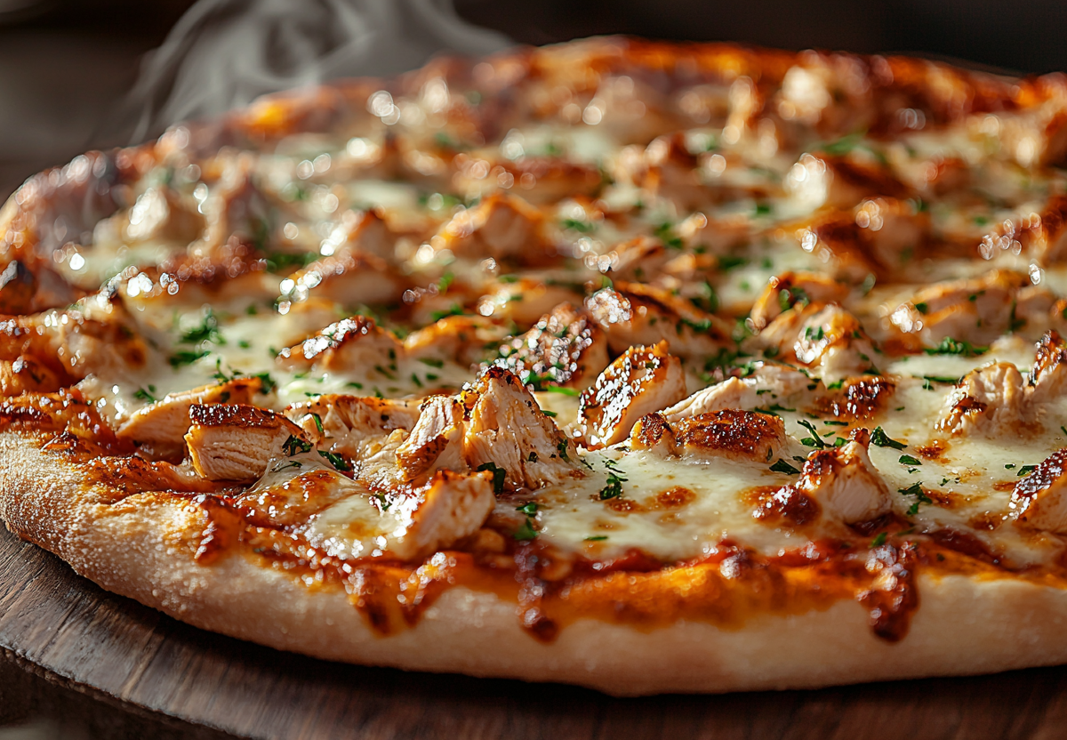 Пицца с курицей и соусом ранч: простой домашний рецепт, а результат как в пиццерии! Это невероятно нежное сочетание ароматной курицы, тягучего сыра и пикантного соуса. Идеальный вариант для семейного ужина или встречи с друзьями — готовится просто, а исчезает мгновенно!