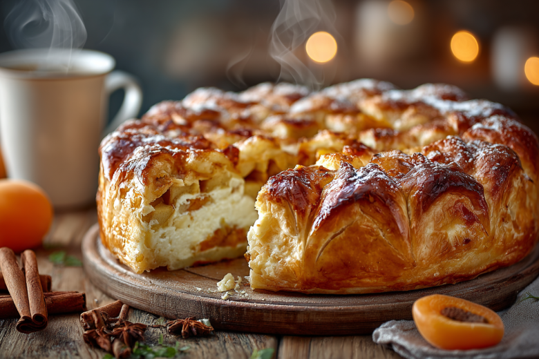 Здесь идеально сочетаются обе начинки, а аромат корицы и сладкой кураги делает десерт по-настоящему домашним и уютным.