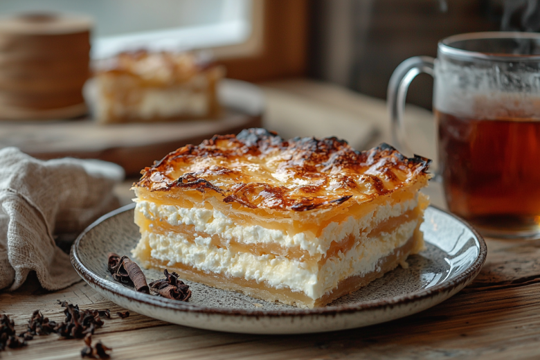 Вкус получается нежным и насыщенным: хрустящий лаваш создает идеальный контраст с сочной творожной начинкой, которая буквально тает во рту. Этот пирог особенно хорош теплым со сметаной или вареньем, а его приготовление занимает минимум времени и усилий, что делает его идеальным решением для быстрого и питательного завтрака для всей семьи.