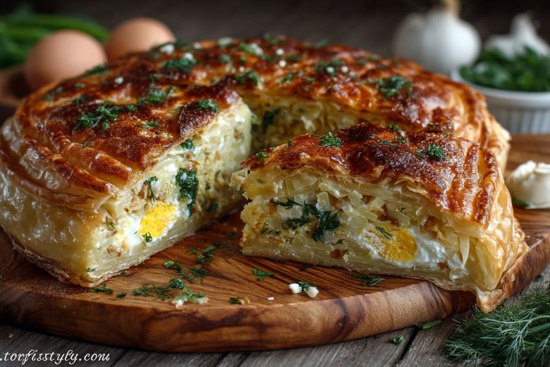 Беру готовое слоеное тесто, свежую капусту, вареные яйца и зелень — и через 40 минут на столе румяный слоистый пирог с сочной начинкой, который достоин праздничного стола. Это гениально простое и невероятно вкусное угощение, идеальное для Пасхи, особенно для тех, кто не ест мяса.