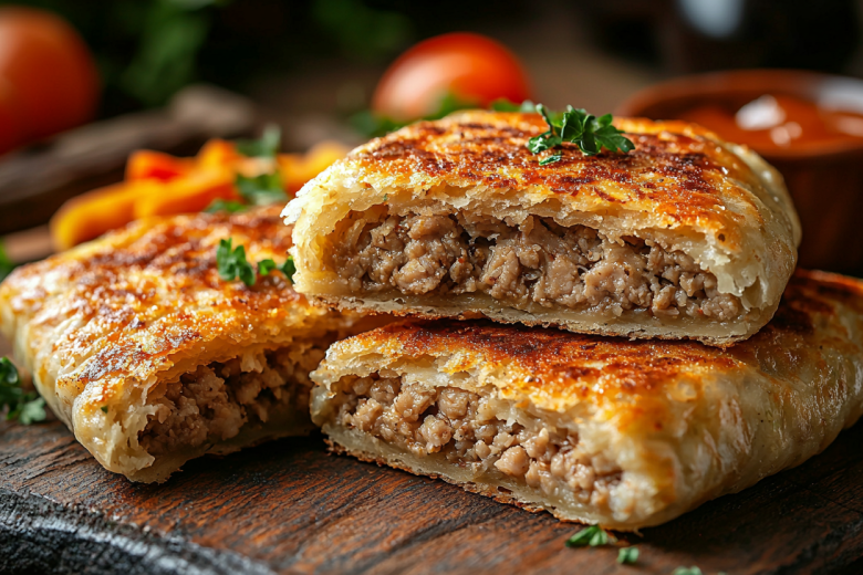 Рецепт: для основы смешайте в миске 250 мл кефира, 2 яйца, 3 ст. л. растительного масла, щепотку соли и постепенно введите 250 г муки с 1 ч. л. соды — должно получиться тесто консистенции густой сметаны. Для начинки обжарьте 300 г куриного фарша с 1 луковицей, добавьте 2 вареных яйца, нарезанных кубиками, 50 г отварного риса, зелень укропа, соль и перец. На сковородку выложите 2 ст. л. теста, сверху 1 ст. л. начинки, закройте ее еще 2 ст. л. теста. Жарьте до золотистой корочки с двух сторон. Или приготовьте в форме для маффинов — налейте по 1 ст. л. теста, выложите 1 ст. л. начинки и залейте еще одной ложкой теста. Выпекайте при 180 °C 25–30 минут до золотистого цвета.