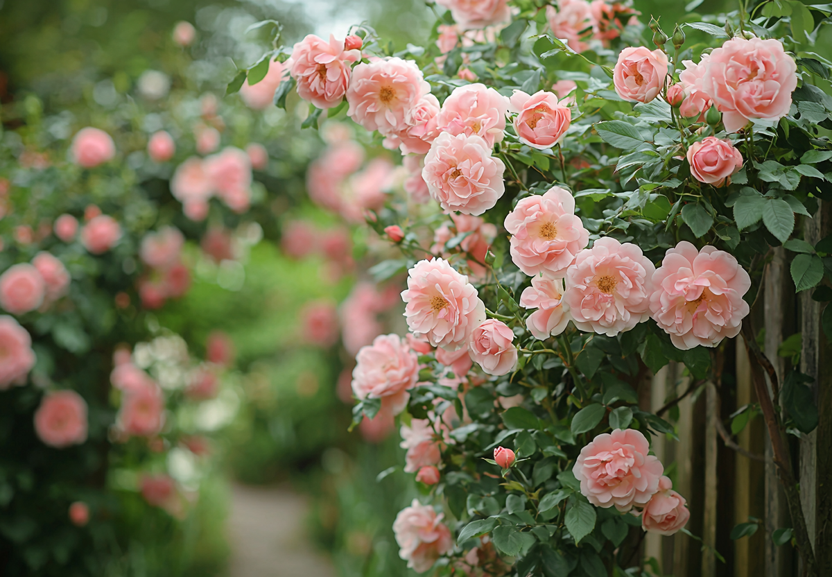 Эта роза образует настоящие цветущие водопады. Дачники ценят Вартбург за исключительную устойчивость к болезням, особенно к мучнистой росе, которая часто поражает другие плетистые розы. Она хорошо зимует под легким укрытием, быстро восстанавливается после подмерзания и сохраняет декоративность до 5–6 лет без омолаживающей обрезки.